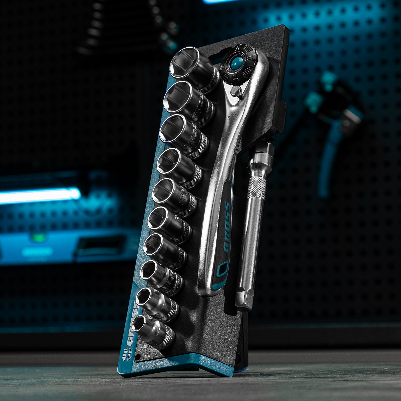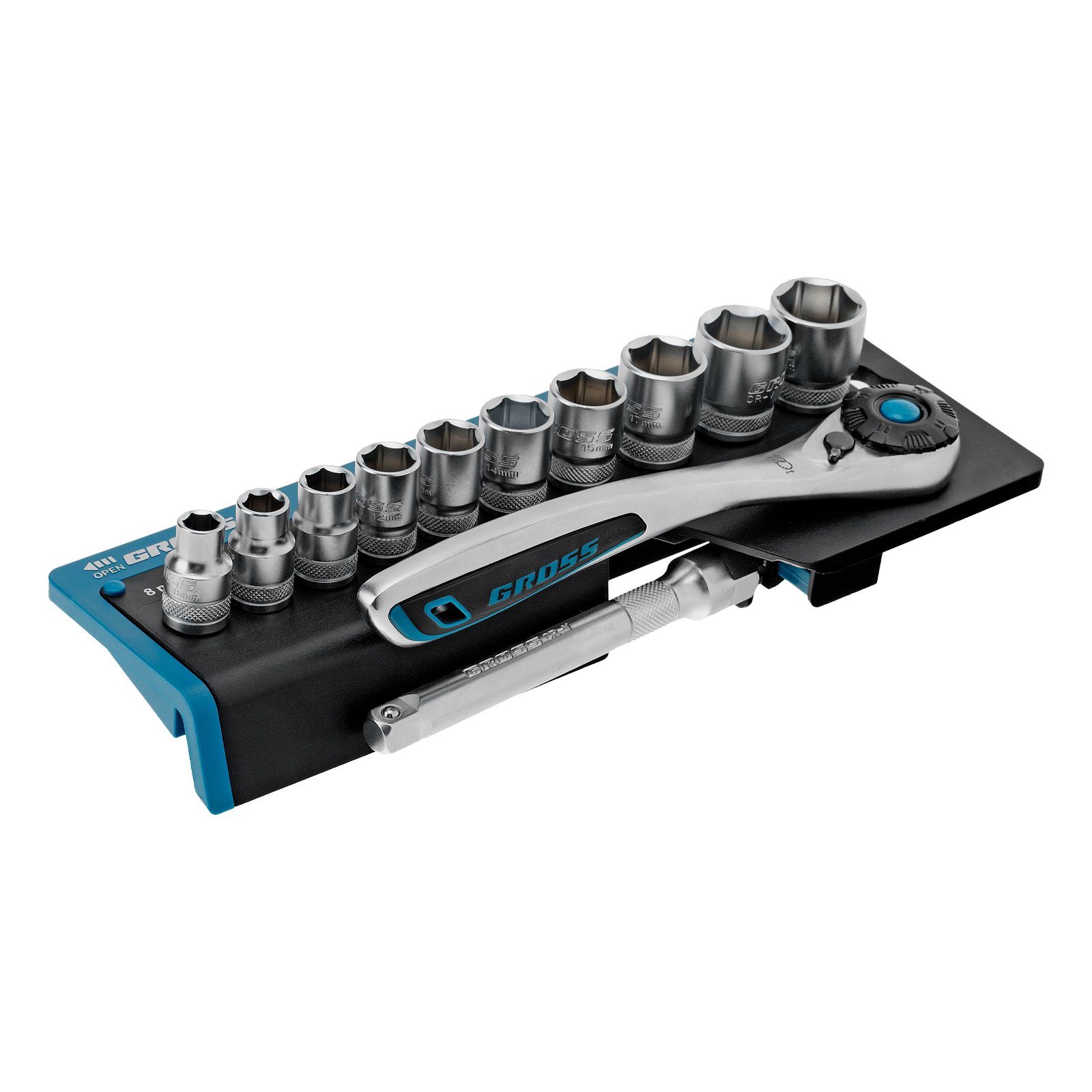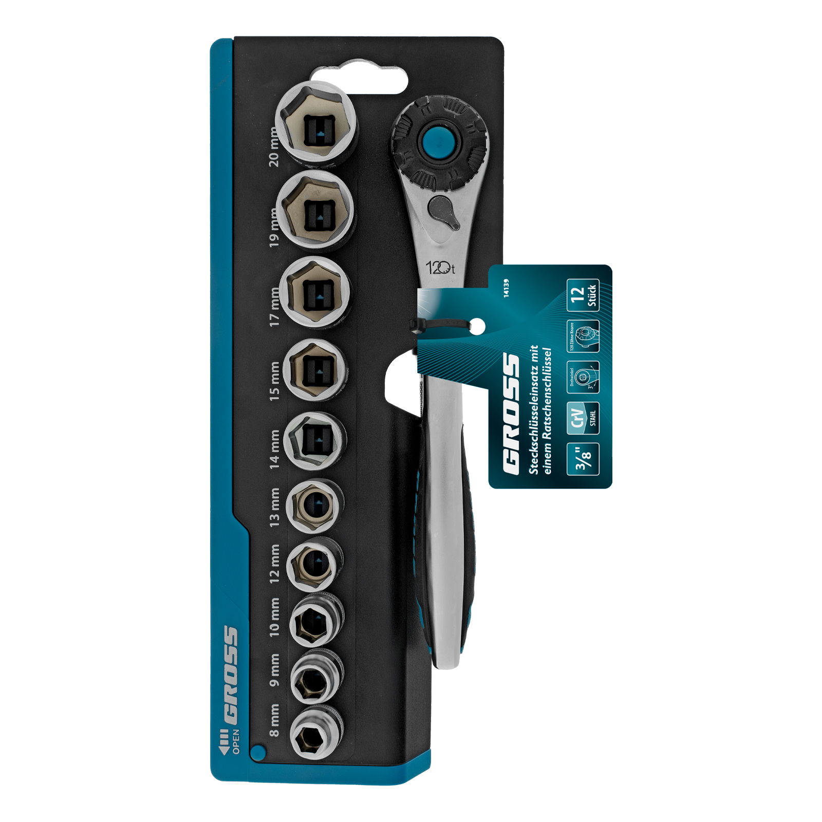 Набор торцевых головок, трещотка 120 зубьев, 3/8", CrV, 12 предметов Gross в Краснодаре