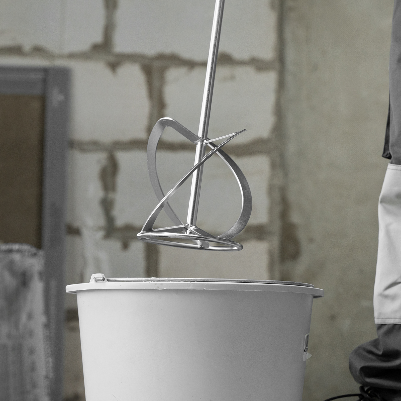 - Прочность — стальная насадка для строительного миксера не деформируется при размешивании густых смесей.