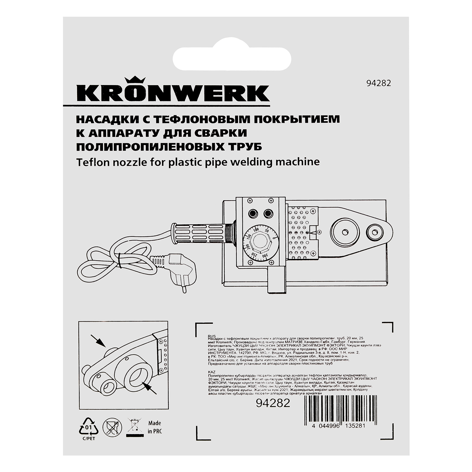 Насадки с тефлоновым покрытием к аппарату для сварки полипропиленовых труб, D: 20 мм, 25 мм Kronwerk в Краснодаре