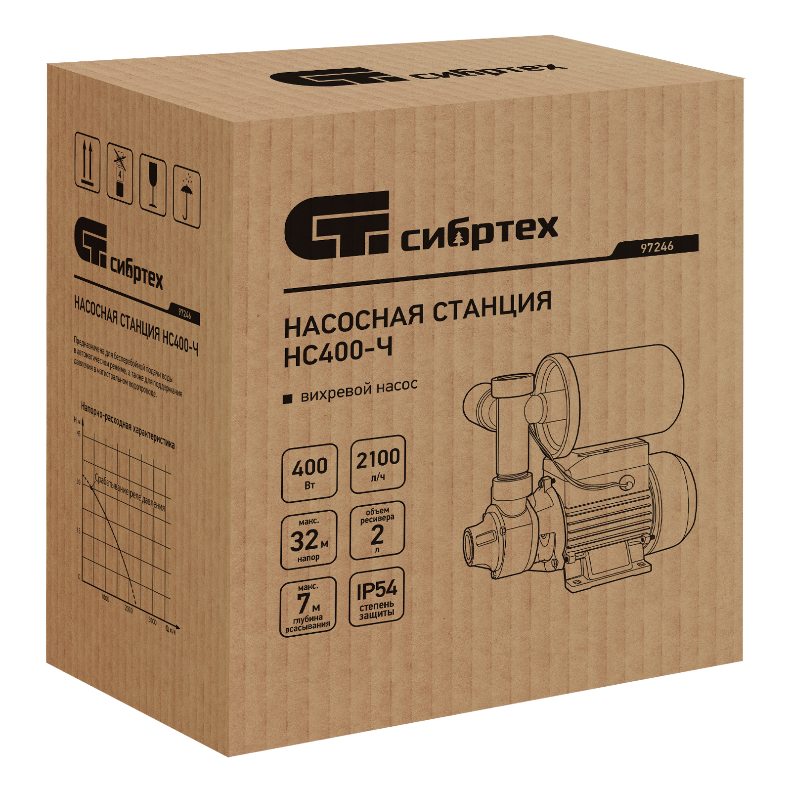 Насосная станция НС400-Ч, 400 Вт, напор 32 м, 2100 л/ч, ресивер 2 л Сибртех в Краснодаре