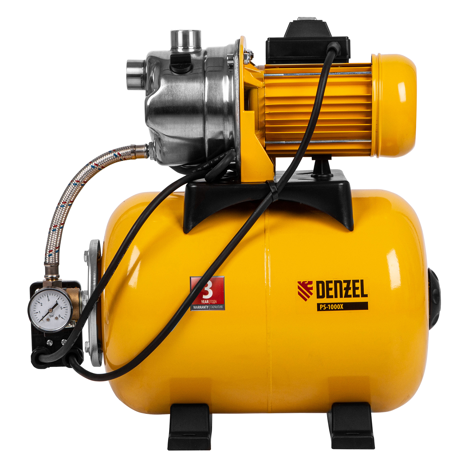 Насосная станция PS1000Х, 1000 Вт, 3500 л/ч, ресивер 24 л, подъем 44 м, нержавейка Denzel в Краснодаре
