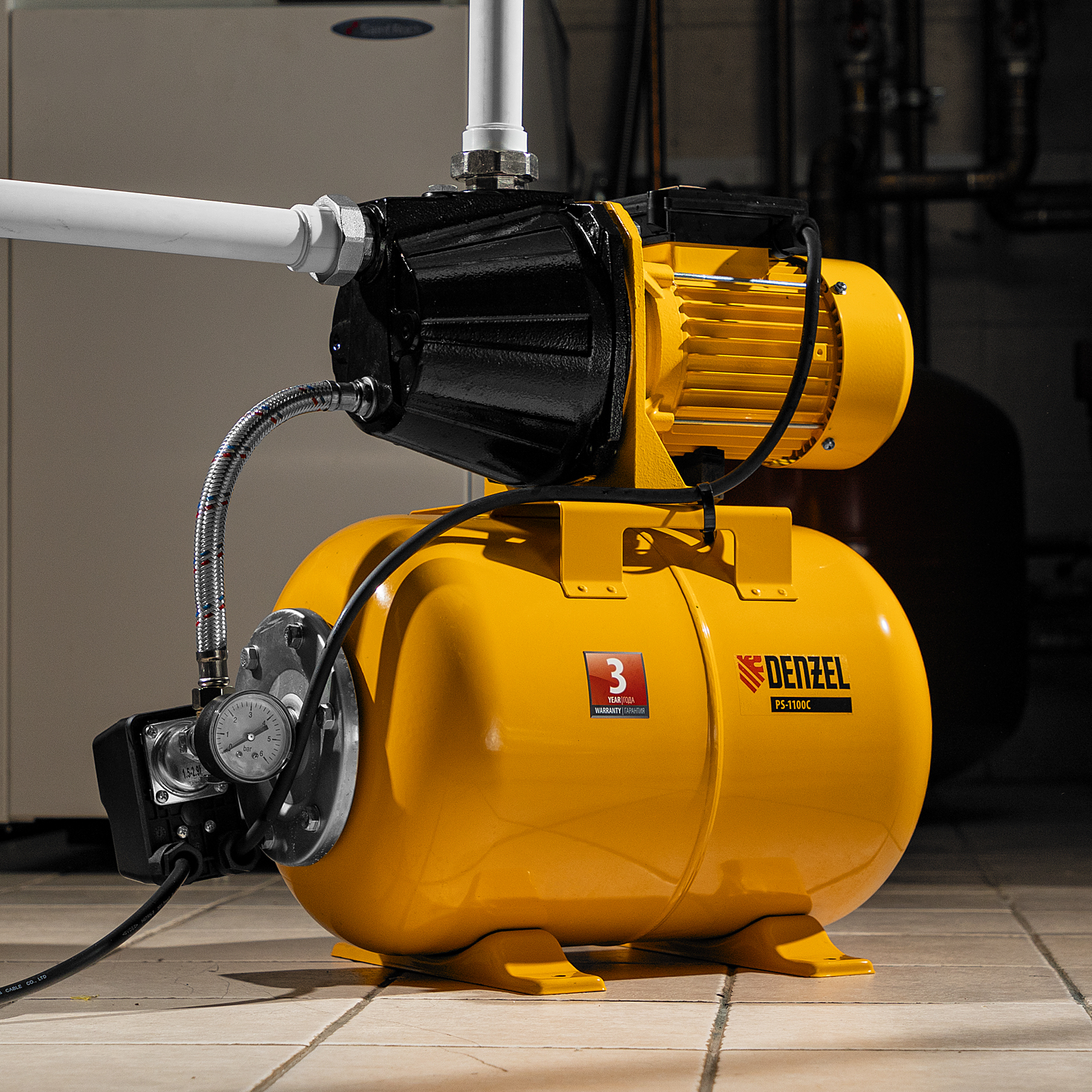 Насосная станция PS1100С, 1100 Вт, 4500 л/ч, ресивер 24 л, подъем 46 м, чугун Denzel в Краснодаре