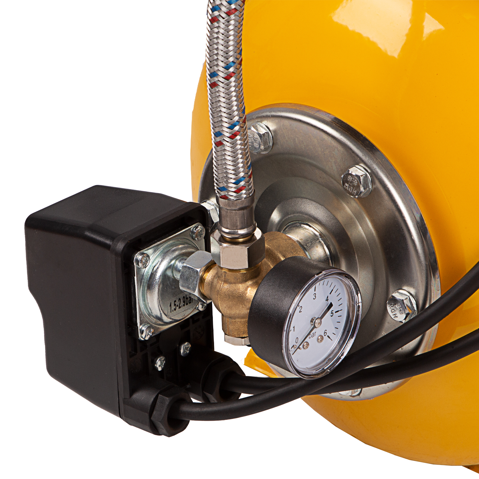 - Манометр на корпусе — удобно контролировать и корректировать рабочие параметры.