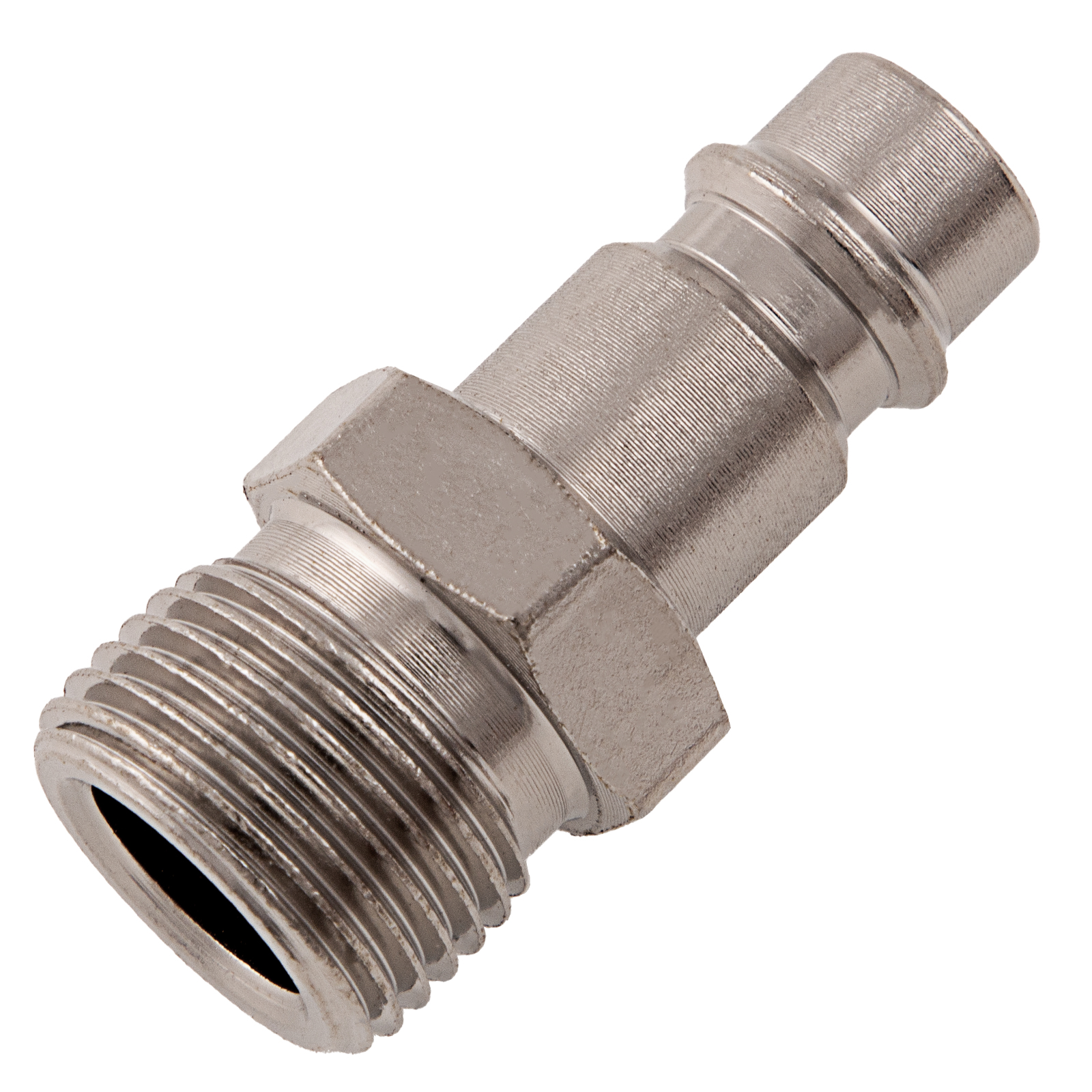 Универсальный быстросъемный ниппель Stels 57059, 2 шт. в упаковке, предназначен для перехода с внешней резьбы 3/8 дюйма на рапид типа «папа» для соединения пневматического шланга и компрессора. Используется для работы с пневмоинструментом, будет полезен на строительной площадке, в гараже и автосервисе.