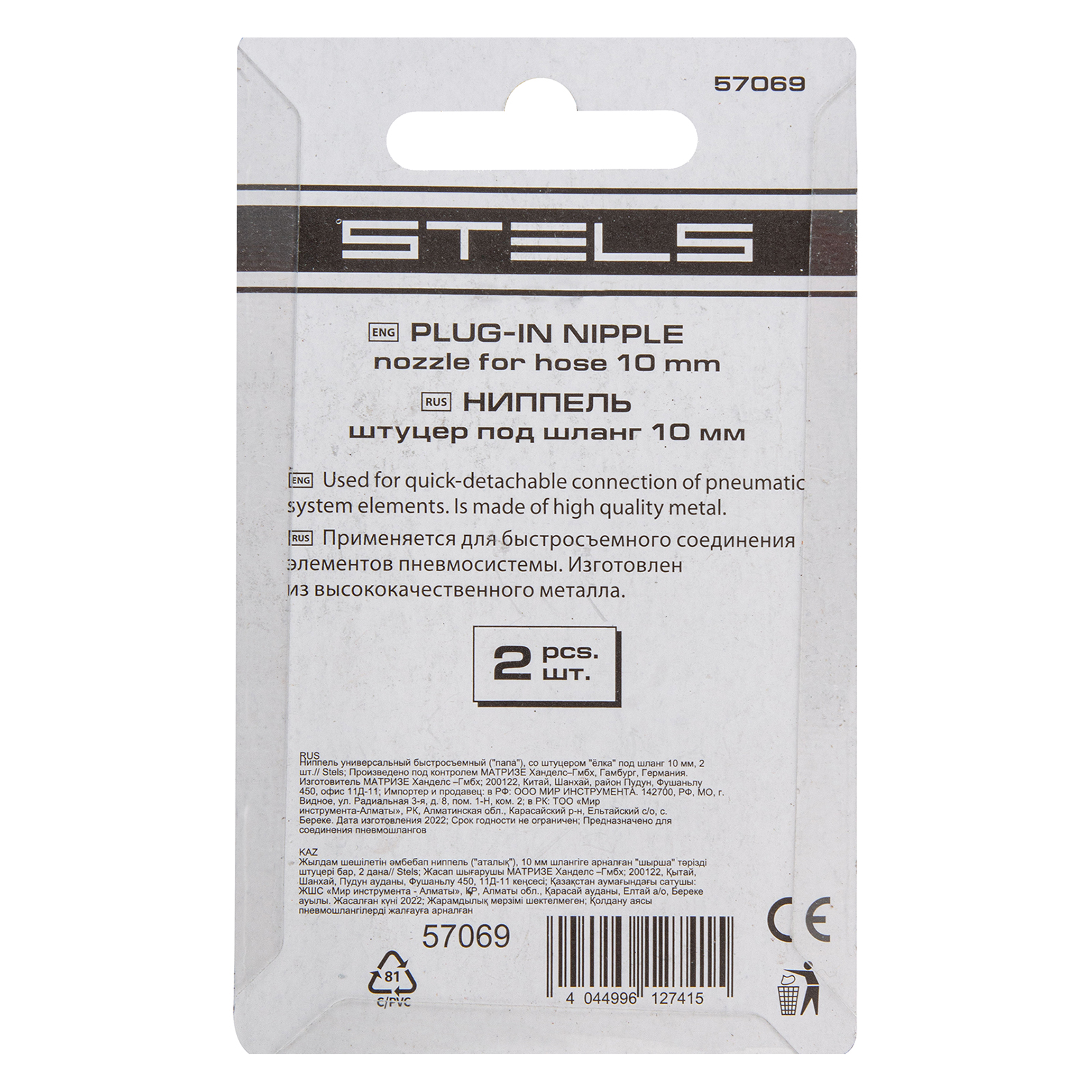 Универсальный быстросъемный ниппель Stels 57069 типа «папа», со штуцером «елка», используется в качестве соединительного элемента для подключения пневмоинструмента (гайковерта, степлера, нейлера, углошлифовальной машины, краскопульта и т.д.) к компрессору. Благодаря ниппелю подготовка пневмосистемы к работе не занимает много времени.