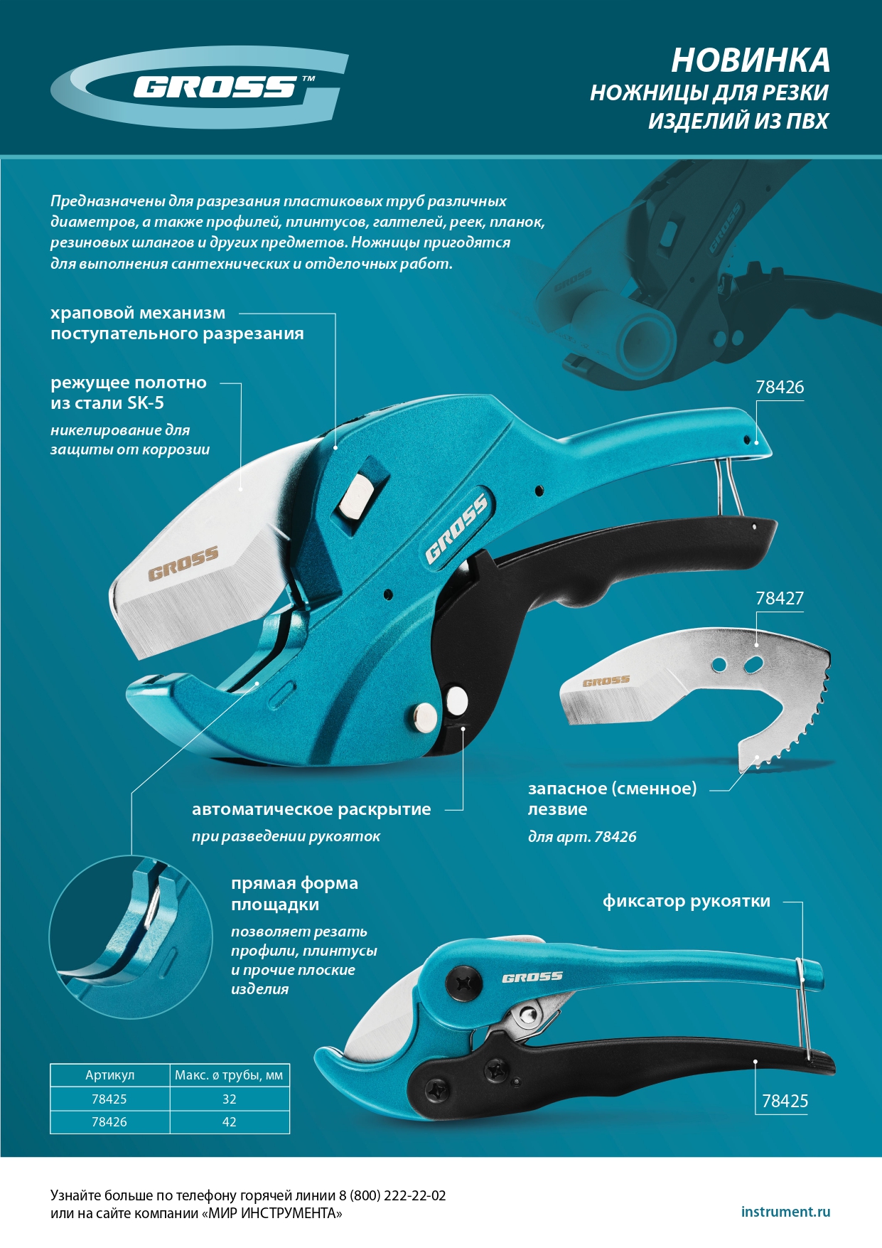 Ножницы для резки изделий из ПВХ, универсальные, D-42 мм, автомат Gross в Краснодаре