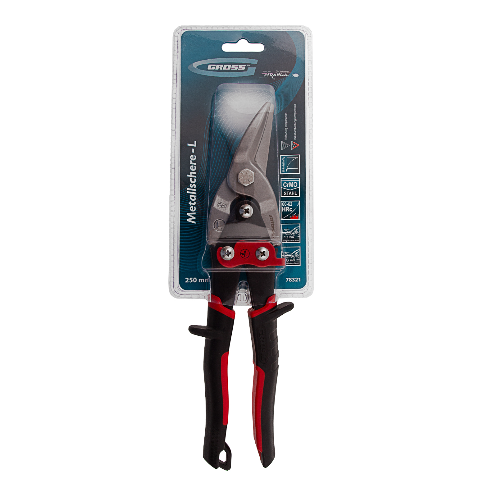 Ножницы по металлу "Piranha", 250 мм, прямой и левый рез, сталь СrMo, двухкомпонентные рукоятки Gross в Краснодаре