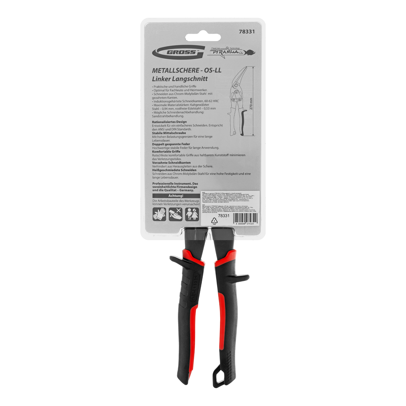 Ножницы по металлу "Piranha", 270 мм, прямой и левый проходной рез, сталь СrMo, двухкомпонентные рукоятки Gross в Краснодаре