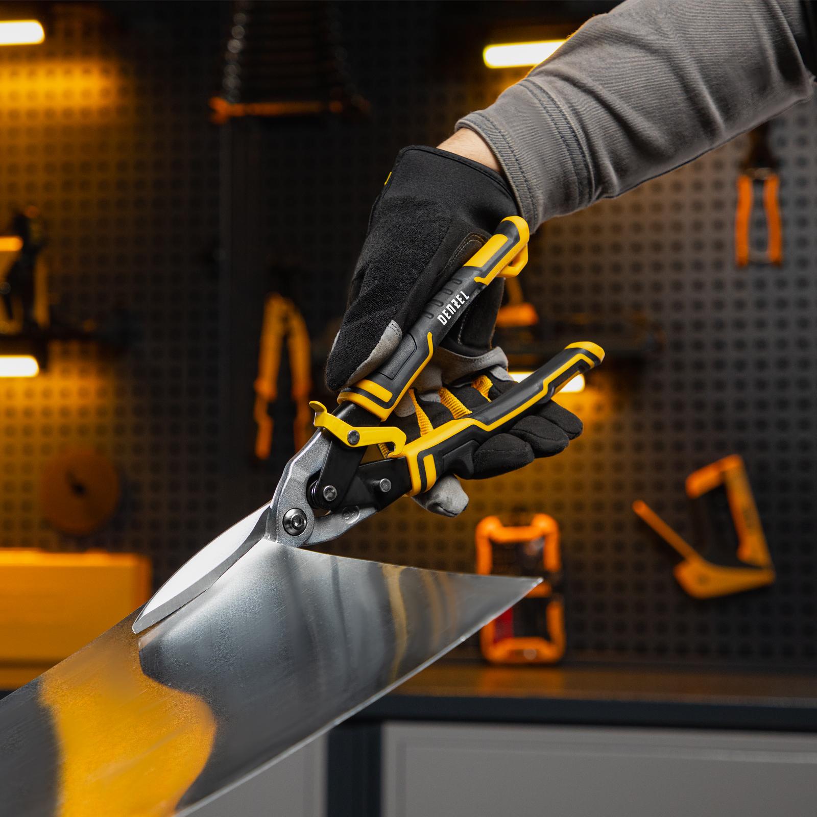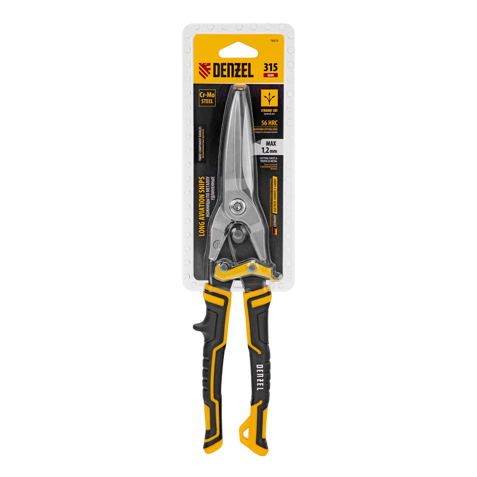 Ножницы по металлу, 315 мм, прямой проходной рез, сталь-CrMo, трехкомпонентные рукоятки Denzel в Краснодаре