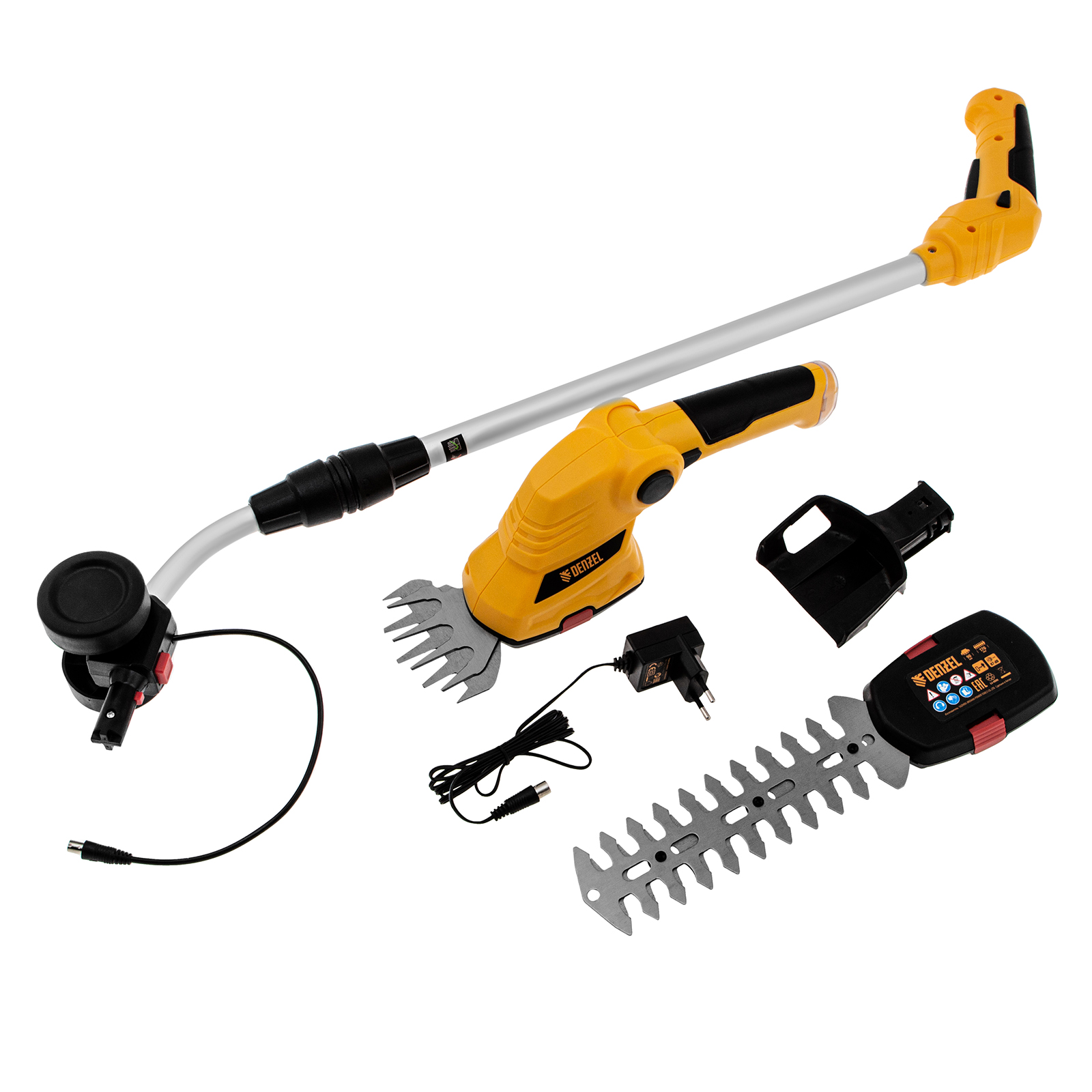Аккумуляторные садовые ножницы - 1 штБлок-переходник - 1 штРежущий модуль для травы быстросъемный - 1 штРежущий модуль для кусторезов быстросъемные - 1 штЗарядное устройство - 1 штТелескопическая рукоятка - 1 штРуководство по эксплуатации с гарантийным талоном - 1 штМодуль для подстригания травы - 1 штМодуль для ухода за кустами - 1 шт |