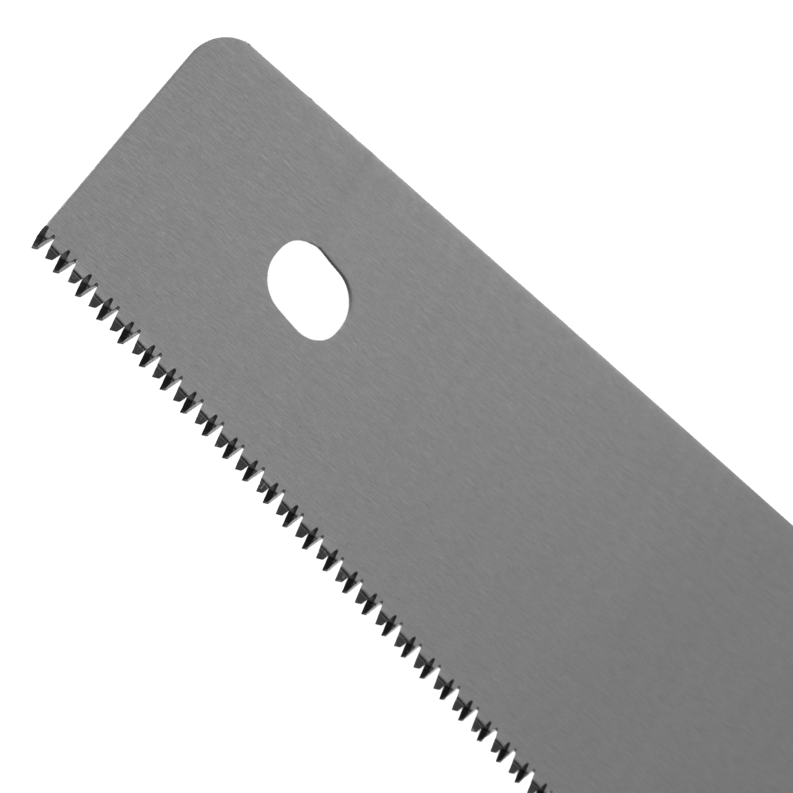 Ножовка по дереву Gross PIRANHA 24104 с полотном длиной 500 мм, калеными зубьями с 3D-заточкой и шагом 11-12 TPI, с 2-компонентной рукояткой, предназначена для распиловки заготовок из древесины, ДСП, ДВП, МДФ и ламината, а также из пластических материалов, таких как пенополистирол и полиуретан. Может производить продольный и поперечный распил. Мелкие зубья с шагом 11-12 TPI позволяют выполнять точный и чистый рез. Ножовка обладает высокой производительностью благодаря трехгранной заточке зубьев. Инструмент используется в столярном деле.