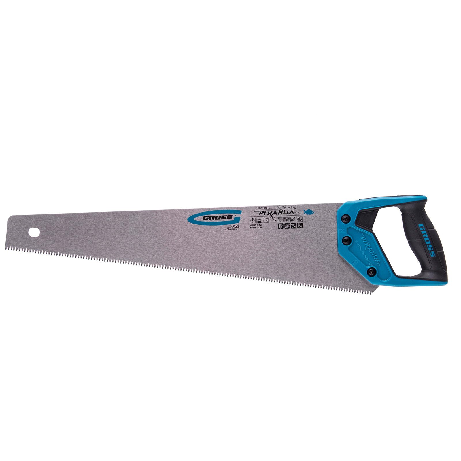 Ножовка по дереву Gross PIRANHA 24101 с полотном длиной 500 мм, калеными зубьями с 3D-заточкой и шагом 7-8 TPI, 2-компонентной рукояткой, используется для распиливания древесины, МДФ, ДСП, ДВП, ламината, а также пенополистирола, полиуретана и других пластических материалов. Подходит для продольного и поперечного пиления. Зубья имеют универсальный шаг 7-8 TPI, поэтому ножовка подходит для решения широкого спектра задач. Трехгранная заточка зубьев обеспечивает максимальную производительность и высокое качество пиления. Ножовка предназначена для столярных и плотницких работ, пригодится во время ремонта и будет полезна в быту.