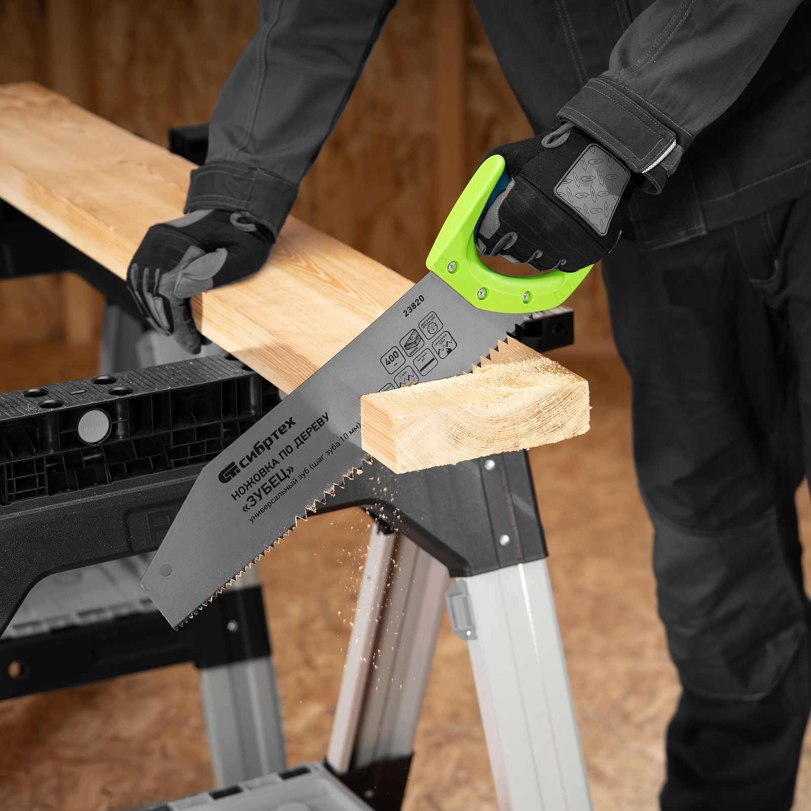 Ножовка по дереву "Зубец", 400 мм, шаг зуба 10 мм, каленый зуб 2D, двухкомпонентная рукоятка Сибртех в Краснодаре