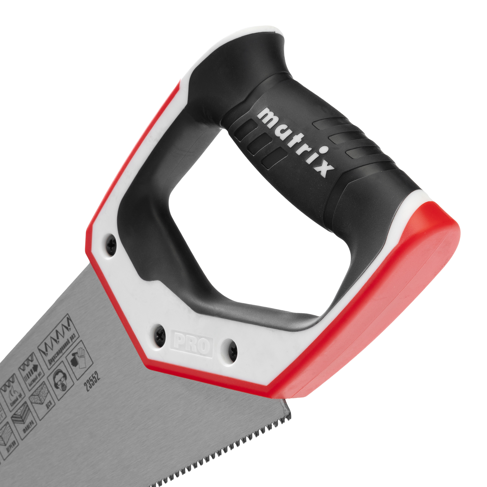 Ножовка по дереву Matrix PRO 23552 с полотном длиной 350 мм, калеными зубьями с шагом 14 TPI и 3D-заточкой, с трехкомпонентной рукояткой, предназначена для точных пильных работ с заготовками из древесины, фанеры и ДСП. Подходит для продольного и поперечного пиления. Шаг зубьев составляет 14 TPI, что обеспечивает точность реза. 3D-заточка зубьев увеличивает производительность ножовки. Инструмент будет полезен в столярной мастерской, а также пригодится в быту.