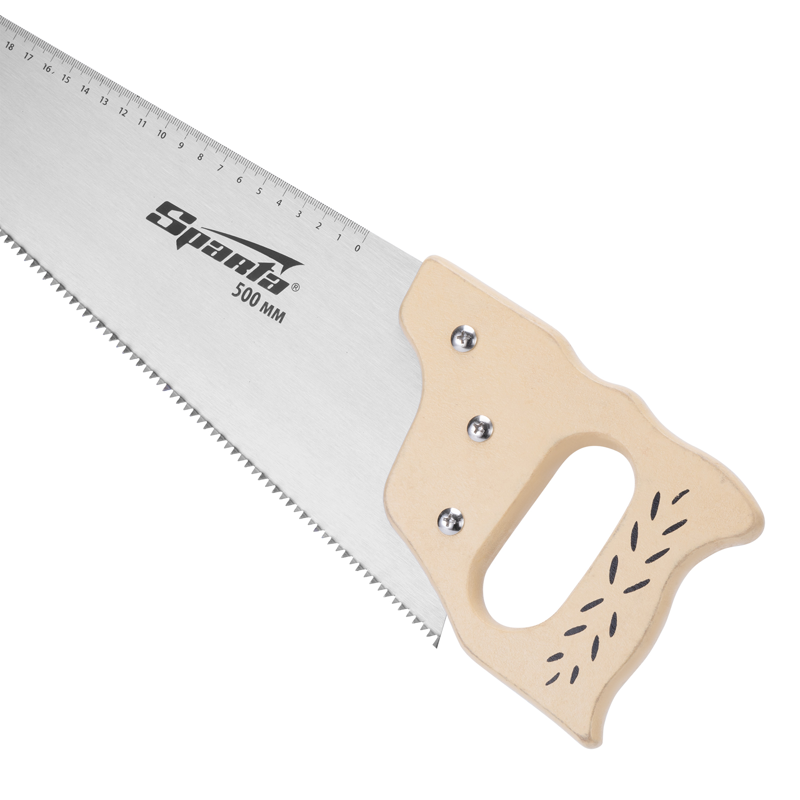 Ножовка по дереву Sparta 231855 с полотном длиной 400 мм, с калеными зубьями с шагом 7-8 TPI, с линейкой и деревянной рукояткой, предназначена для продольно-поперечного распиливания древесины. Благодаря зубьям с 2D-заточкой подходит для двухстороннего реза. Режущую кромку можно перетачивать. На полотно нанесена измерительная шкала, позволяющая производить замеры, не тратя время на поиск линейки. Ножовка используется в столярном и плотницком деле, а также полезна дома и на даче.