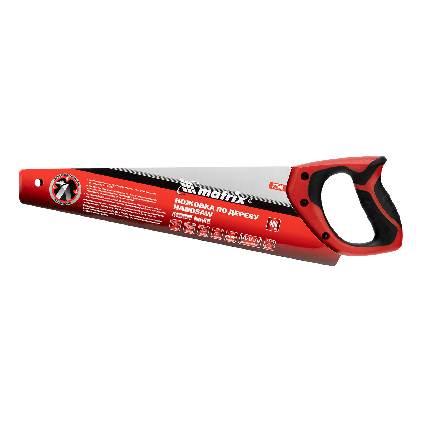 Ножовка по дереву, 400 мм, 7-8 TPI, зуб-3D, каленый зуб, тефлоновое покрытие полотна, двухкомпонентная рукоятка Matrix в Краснодаре