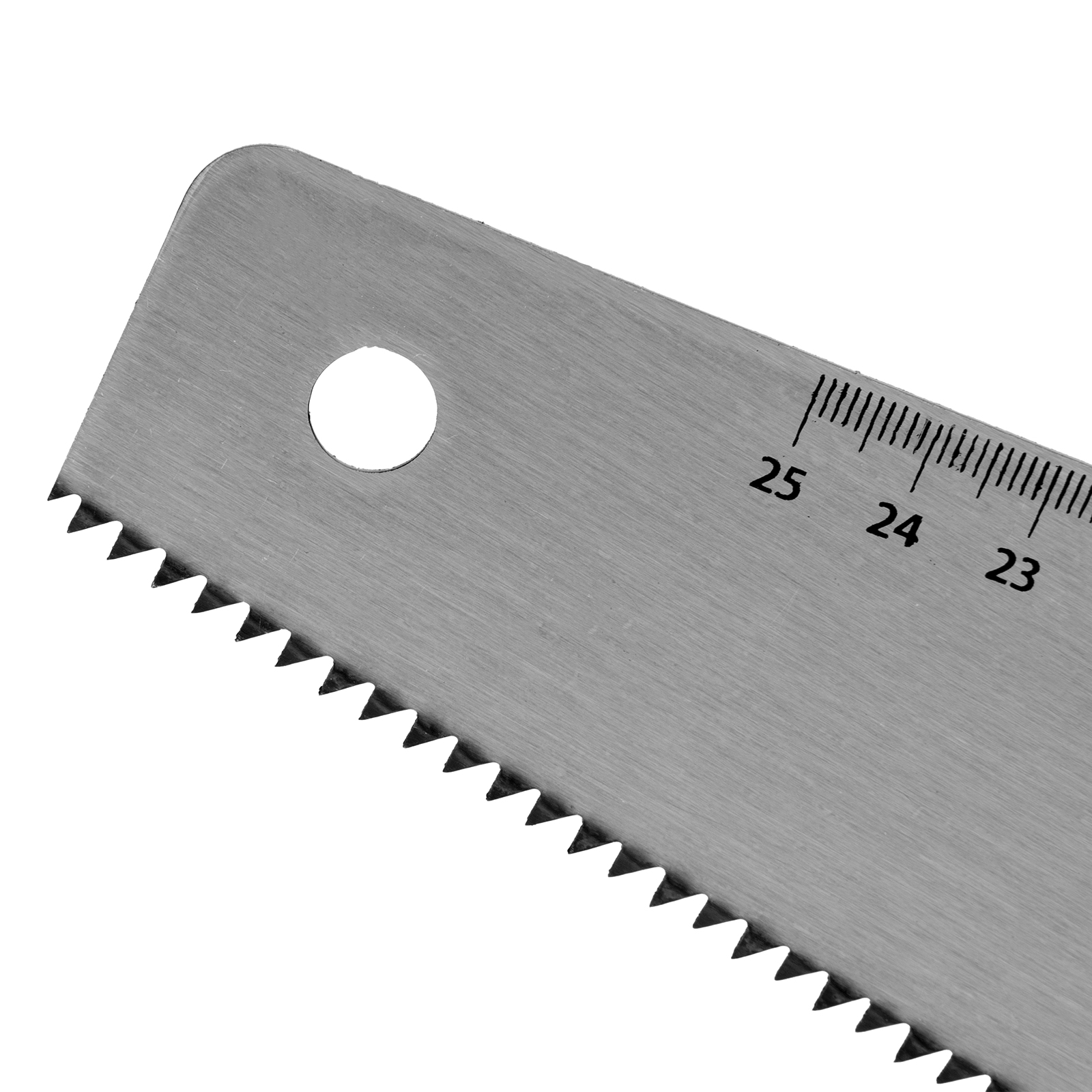 Ножовка по дереву Sparta 231875 с полотном длиной 450 мм, с калеными зубьями с шагом 7-8 TPI, с линейкой и деревянной рукояткой, предназначена для продольно-поперечного распиливания древесины. Благодаря зубьям с 2D-заточкой подходит для двухстороннего реза. Режущую кромку можно перетачивать. На полотно нанесена измерительная шкала, позволяющая производить замеры, не тратя время на поиск линейки. Ножовка используется в столярном и плотницком деле, а также полезна дома и на даче.