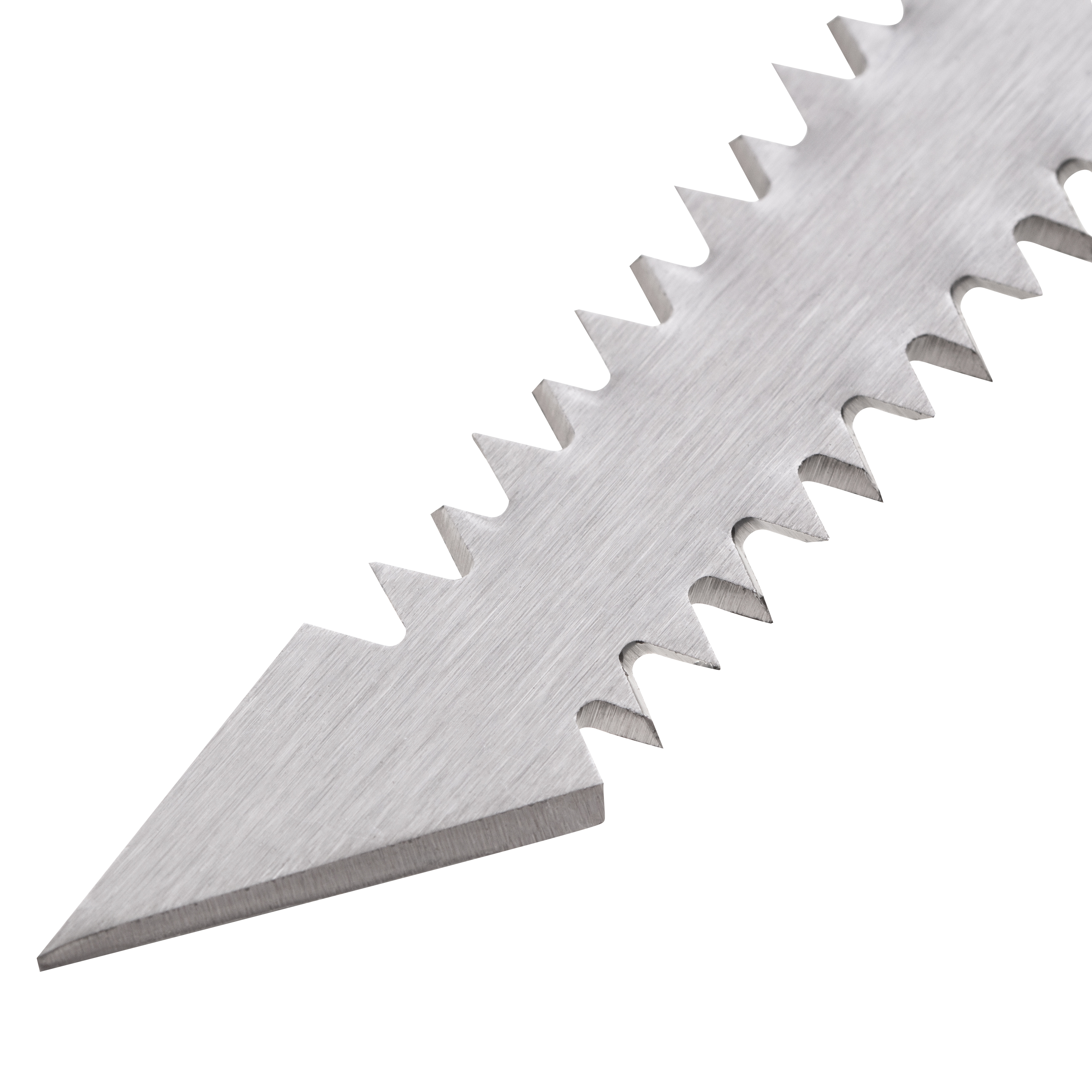 - Прочность и износостойкость — полотно изготовлено из пружинной стали 65Mn, зубья твердостью 50-55 HRC долго сохраняют режущую способность.