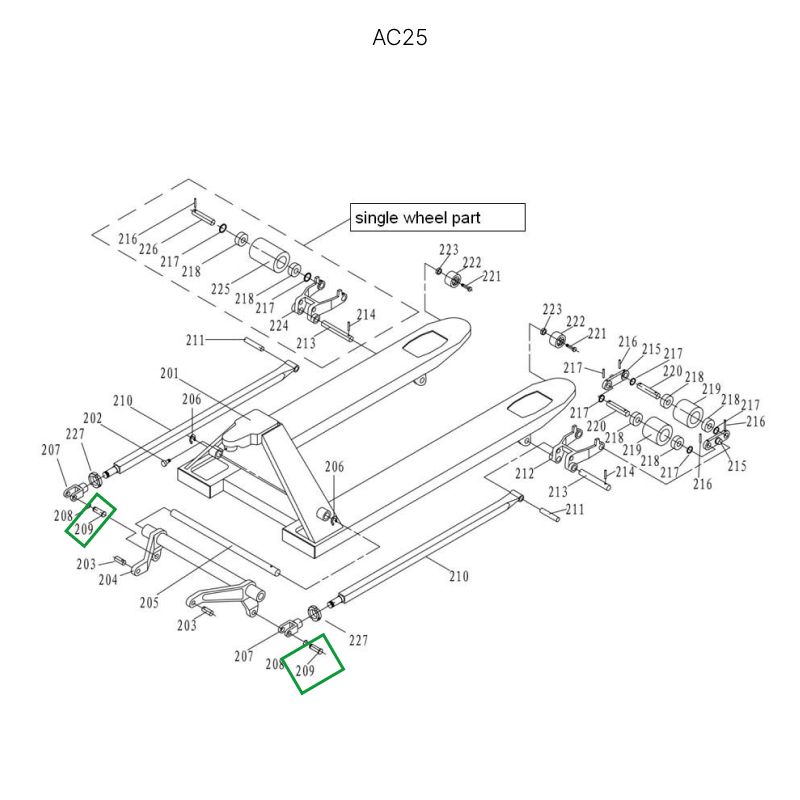 Ось крепления углового рычага к подвильной тяге для гидравлических тележек AC25