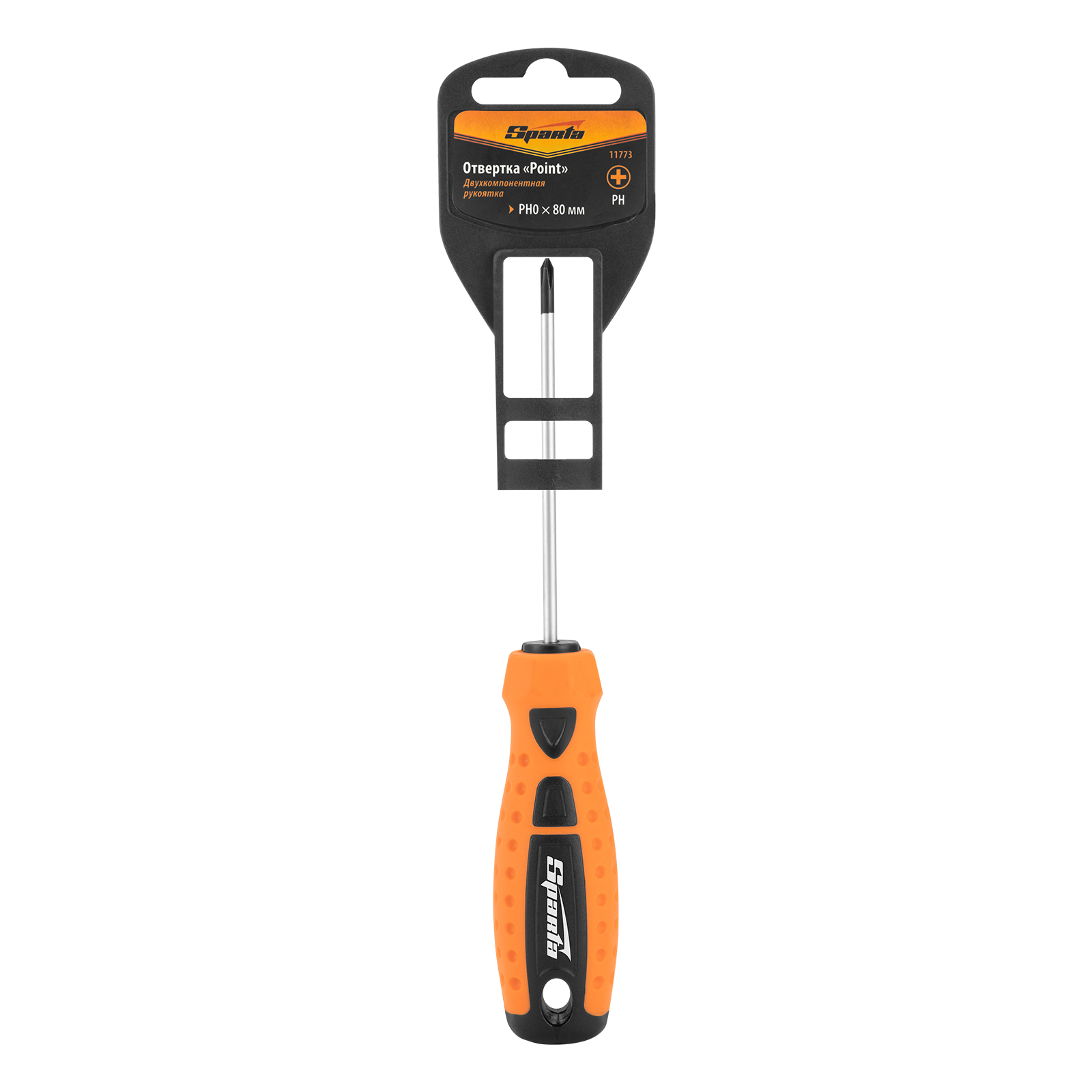 Отвертка "Point", PH0 х 80 мм, CS, двухкомпонентная рукоятка Sparta в Краснодаре