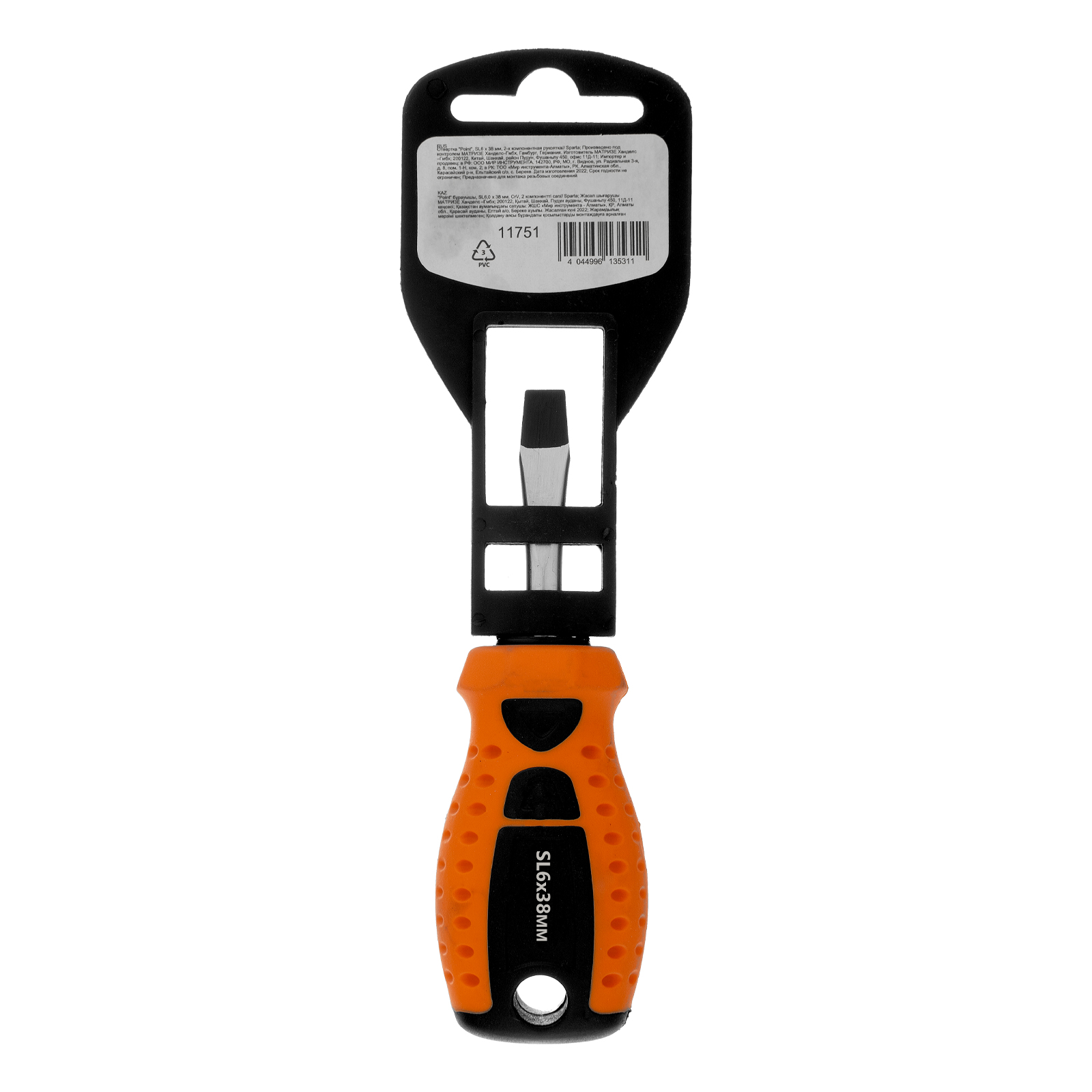 Отвертка Sparta «Point» 11751 из стали CrV, с 2-х компонентной рукояткой, рассчитана на бытовое применение для работ с крепежом типоразмера SL6. Она пригодится мастерам при осуществлении мелких ремонтных работ. Укороченный стержень длиной 38 мм повышает удобство работы в труднодоступных местах, что особенно актуально в автомастерской.