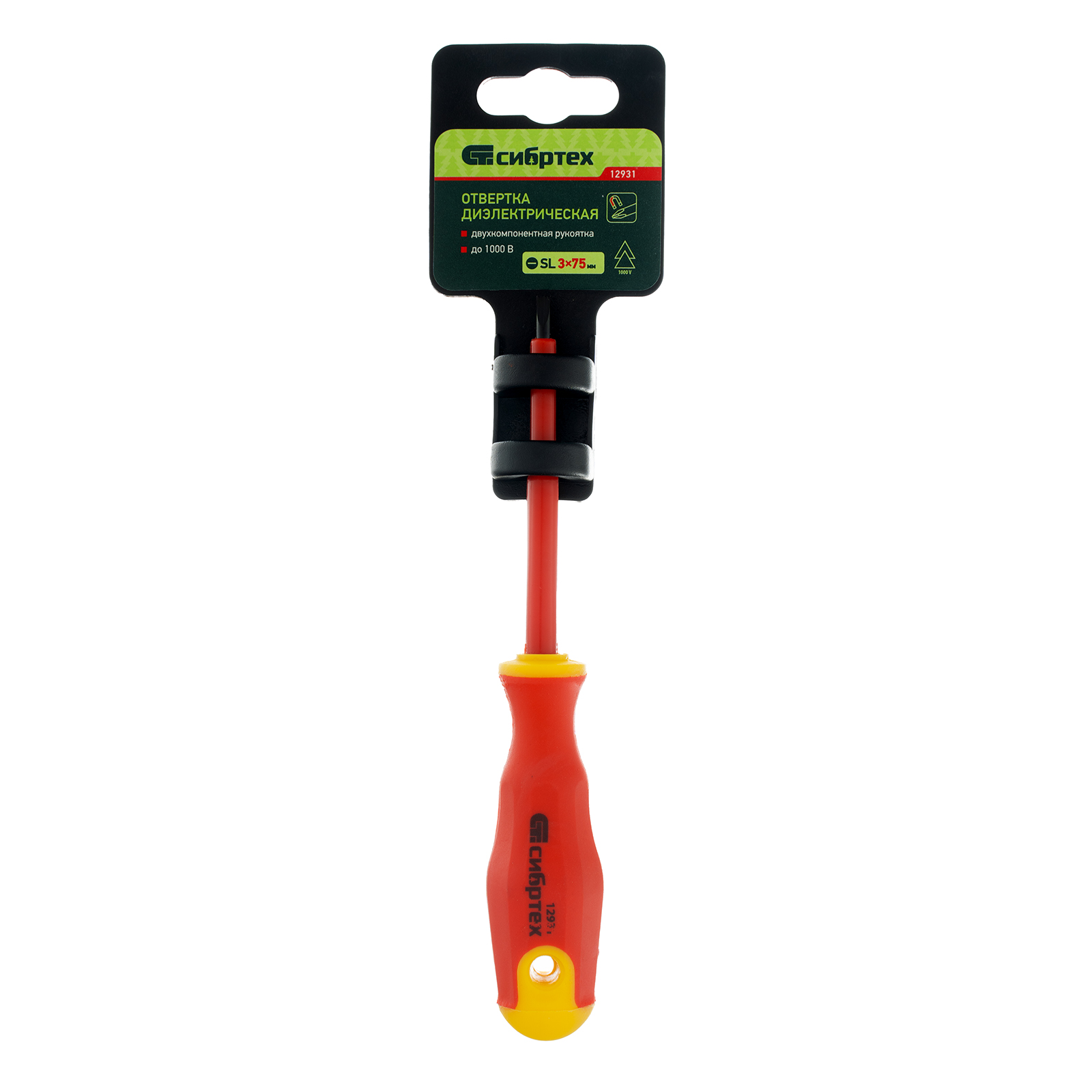 Отвертка диэлектрическая SL3 х 75 мм, CrV, до 1000 В, двухкомпонентная рукоятка Сибртех в Краснодаре