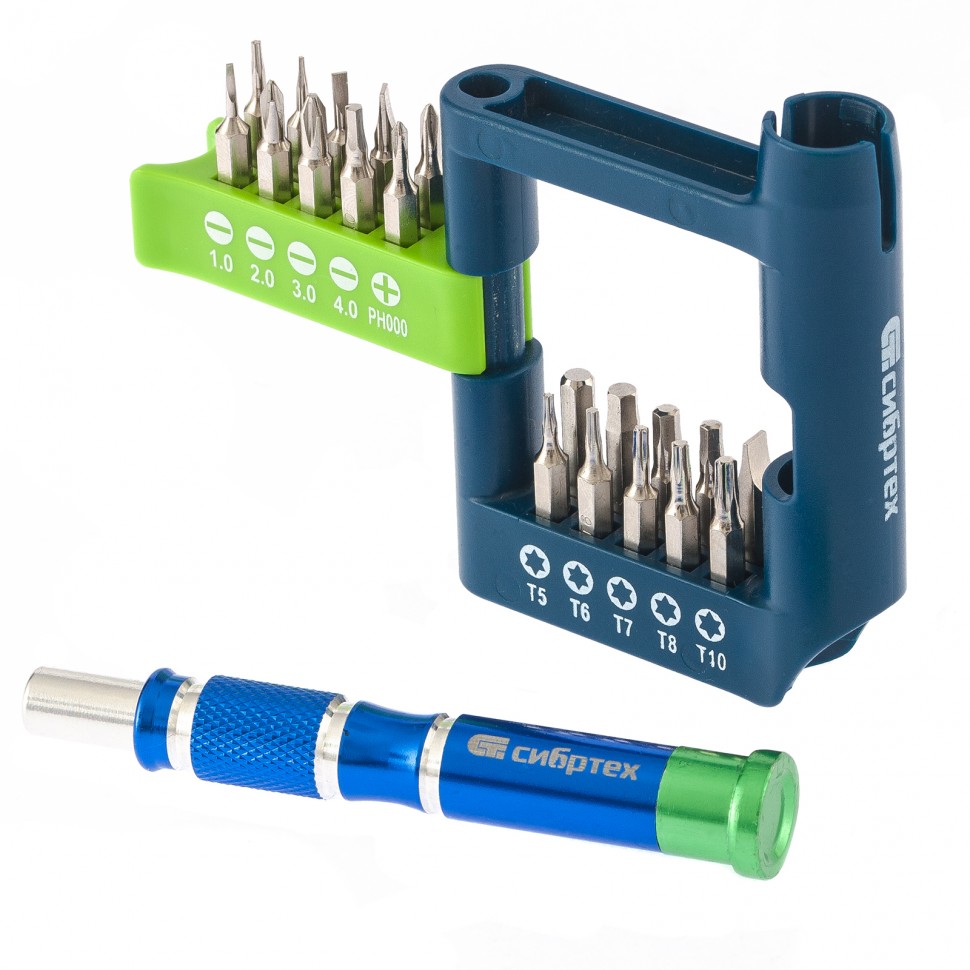 Отвертка для точных работ с набором бит, 21 шт, CrV Сибртех в Краснодаре
