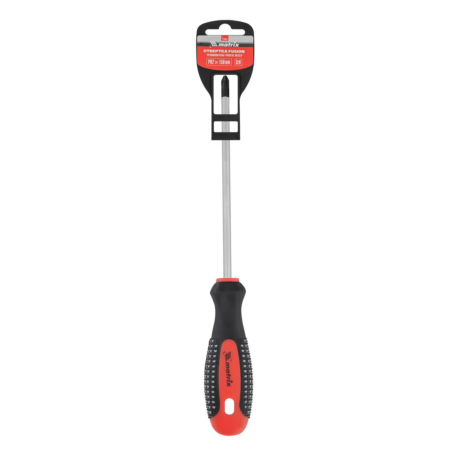 Отвертка Fusion, PH2 х 150 мм, CrV, трехкомпонентная рукоятка "Anti slip" Matrix