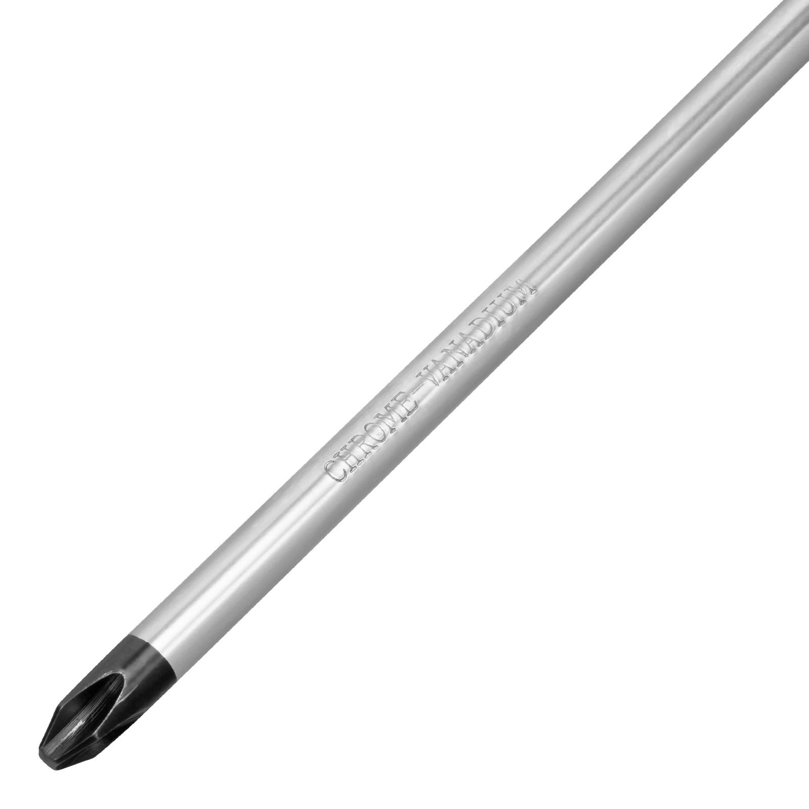 - Стержень и жало выполнены из износостойкой легированной стали CrV твердостью 50-52 HRC, что обеспечивает долгий срок службы отвертки.