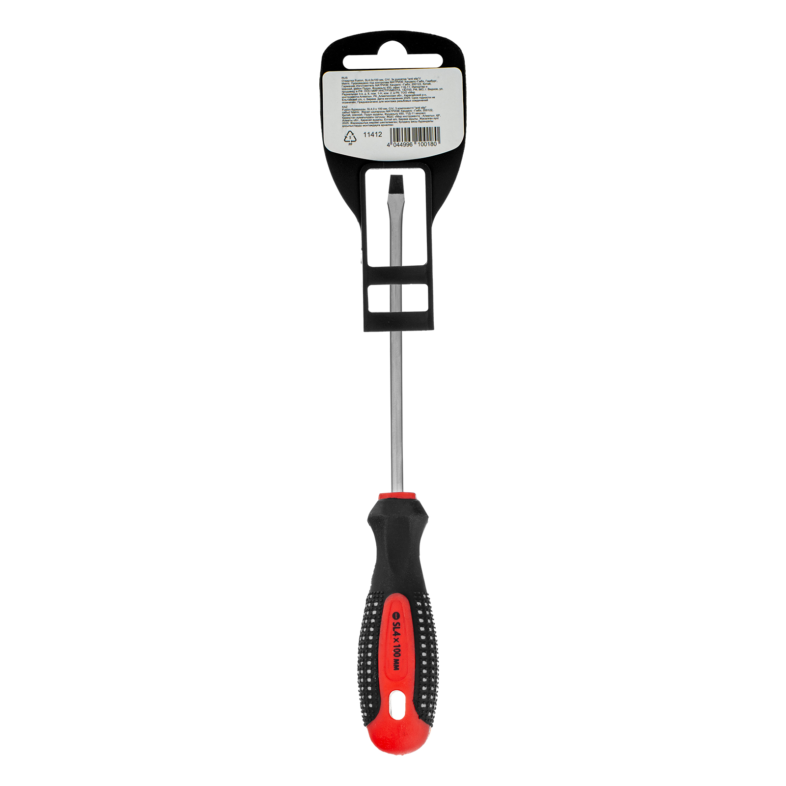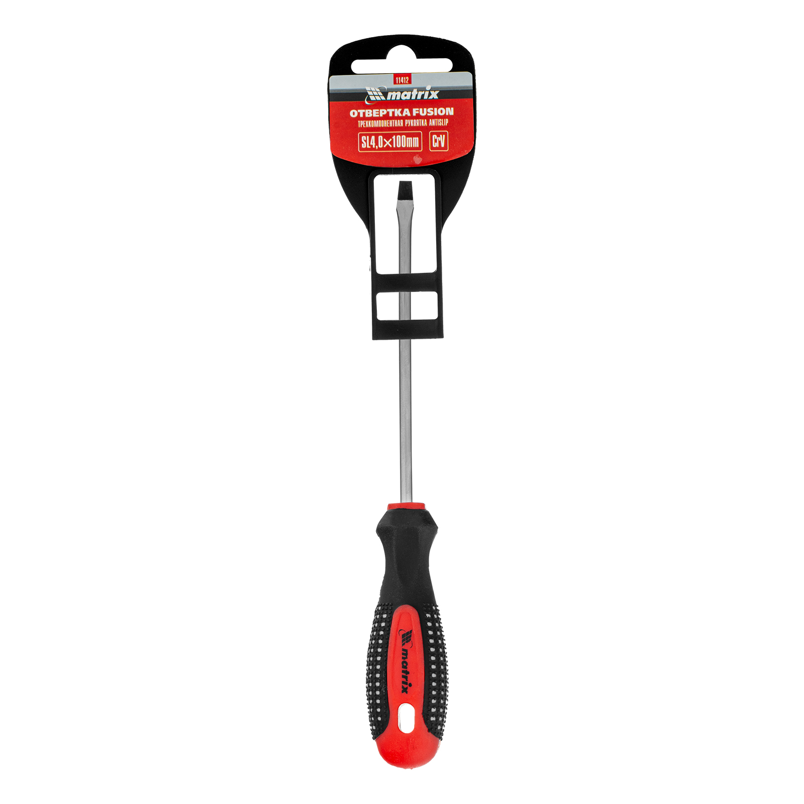 Отвертка Fusion, SL4 х 100 мм, CrV, трехкомпонентная рукоятка "Anti slip" Matrix в Краснодаре