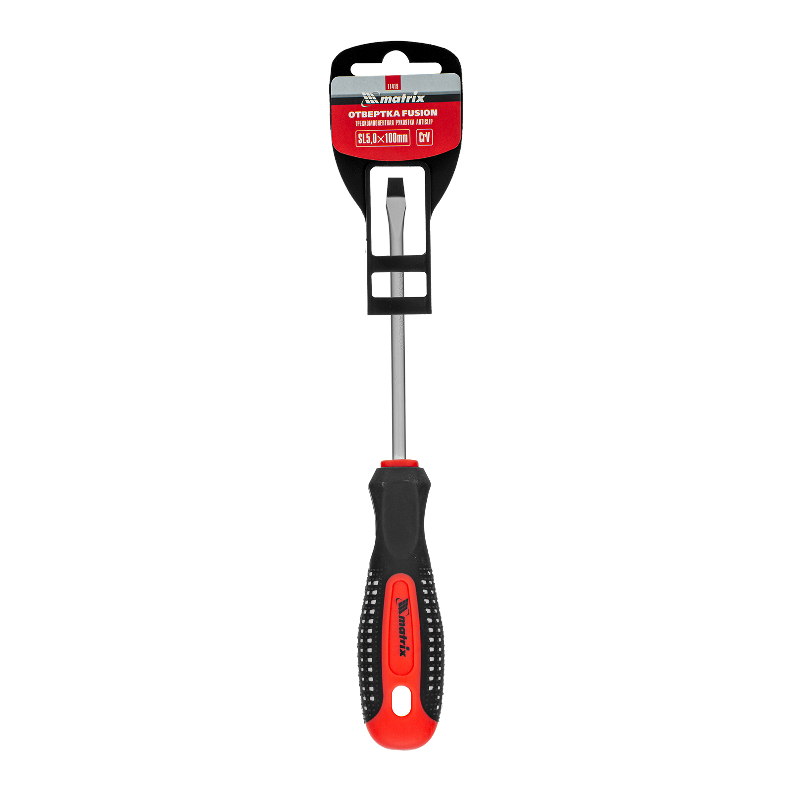 Отвертка Fusion, SL5 х 100 мм, CrV, трехкомпонентная рукоятка "Anti slip" Matrix в Краснодаре