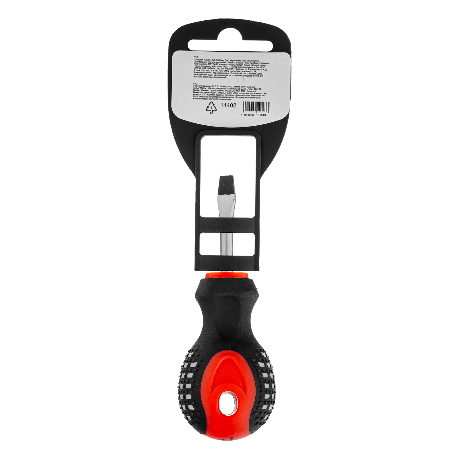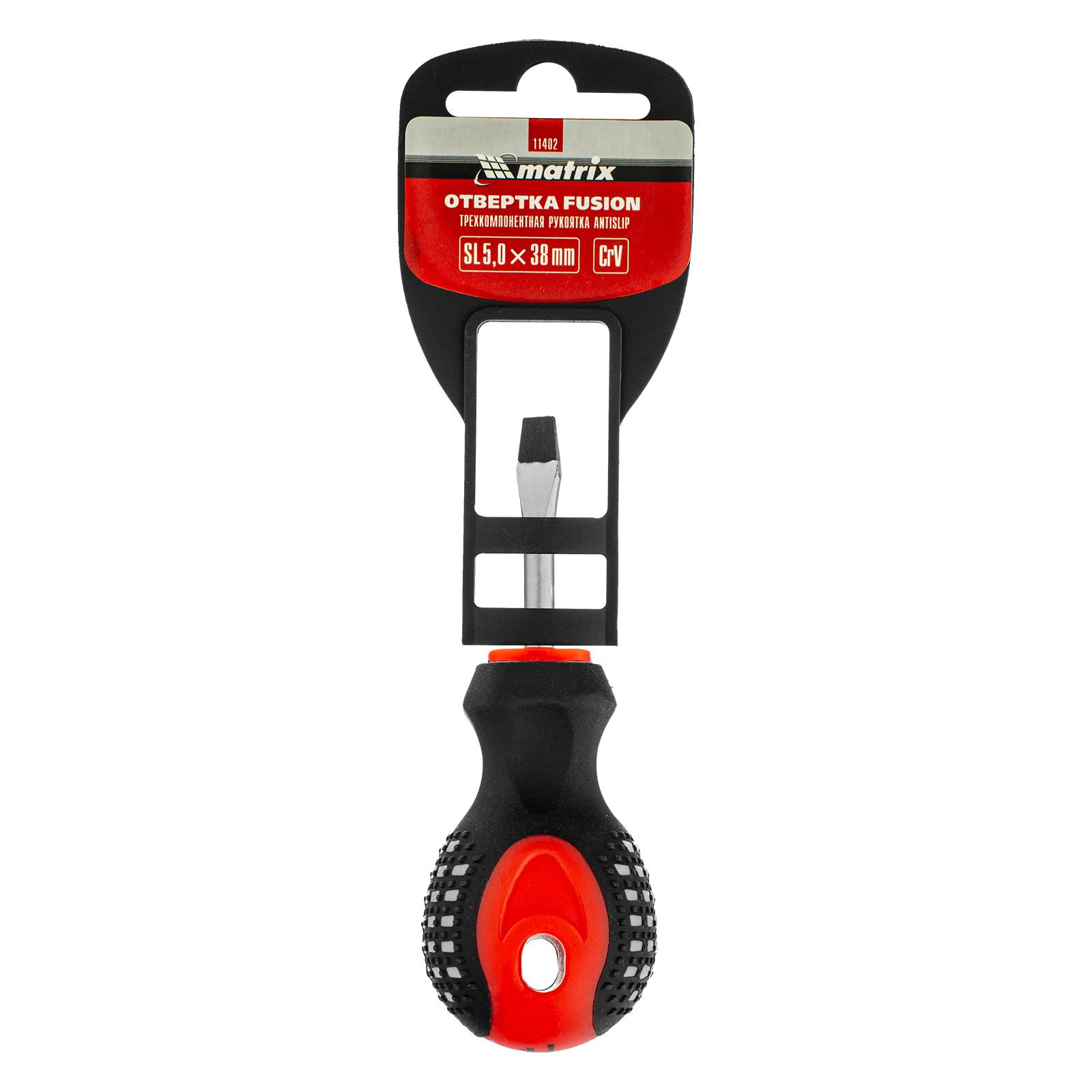 Отвертка Fusion, SL5 х 38 мм, CrV, трехкомпонентная рукоятка "Anti slip" Matrix в Краснодаре