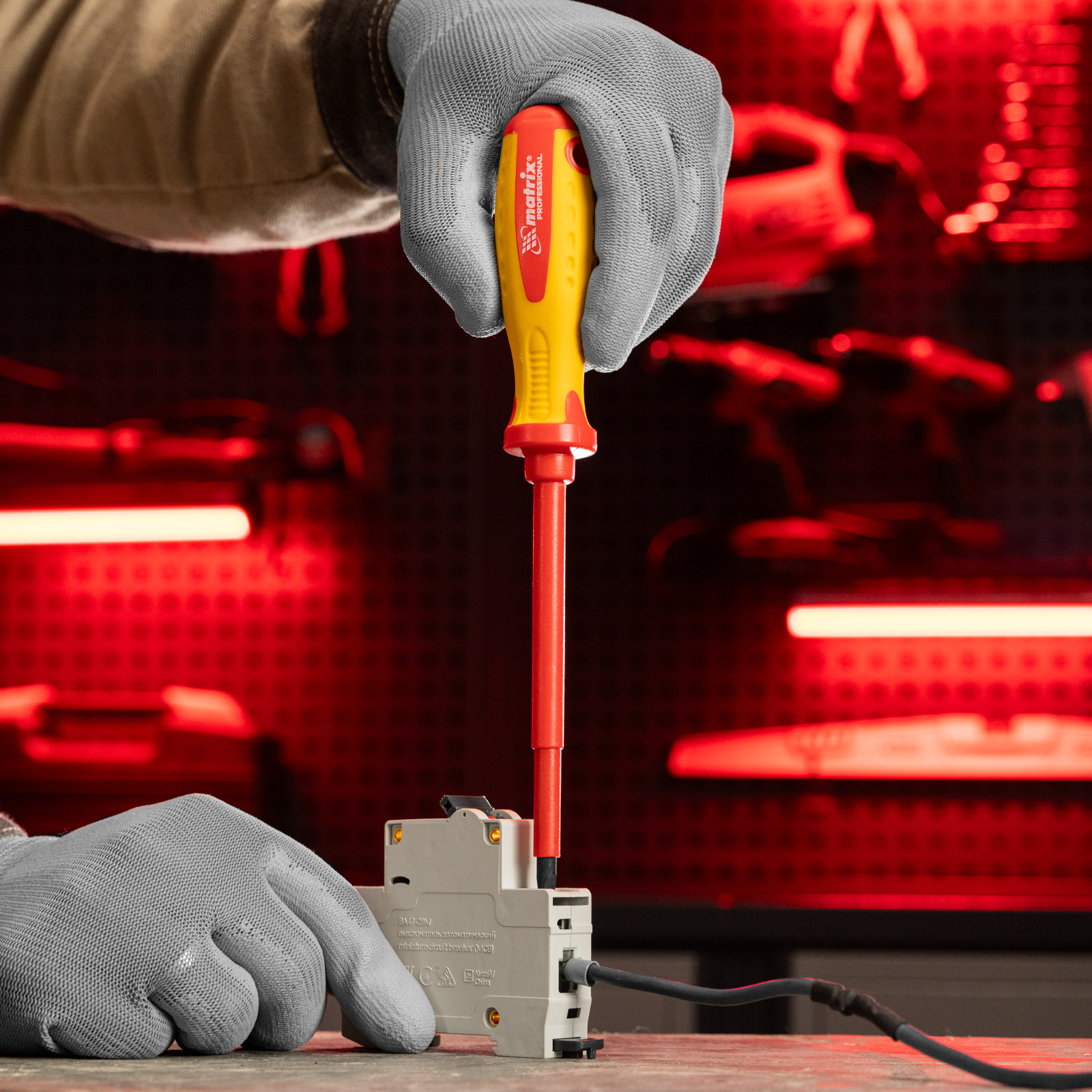 Отвертка Matrix Insulated 12918, SL5,5 x 125 мм, из стали CrMo, с двухкомпонентной рукояткой до 1000 В, используется при проведении ремонтных с крепежом типа Slotted «минус». Благодаря диэлектрическому покрытию она выдерживает напряжение до 1000 В, поэтому оптимально подходит для настройки электрооборудования, установки розеток и др. Важно — техника безопасности запрещает работать под напряжением!