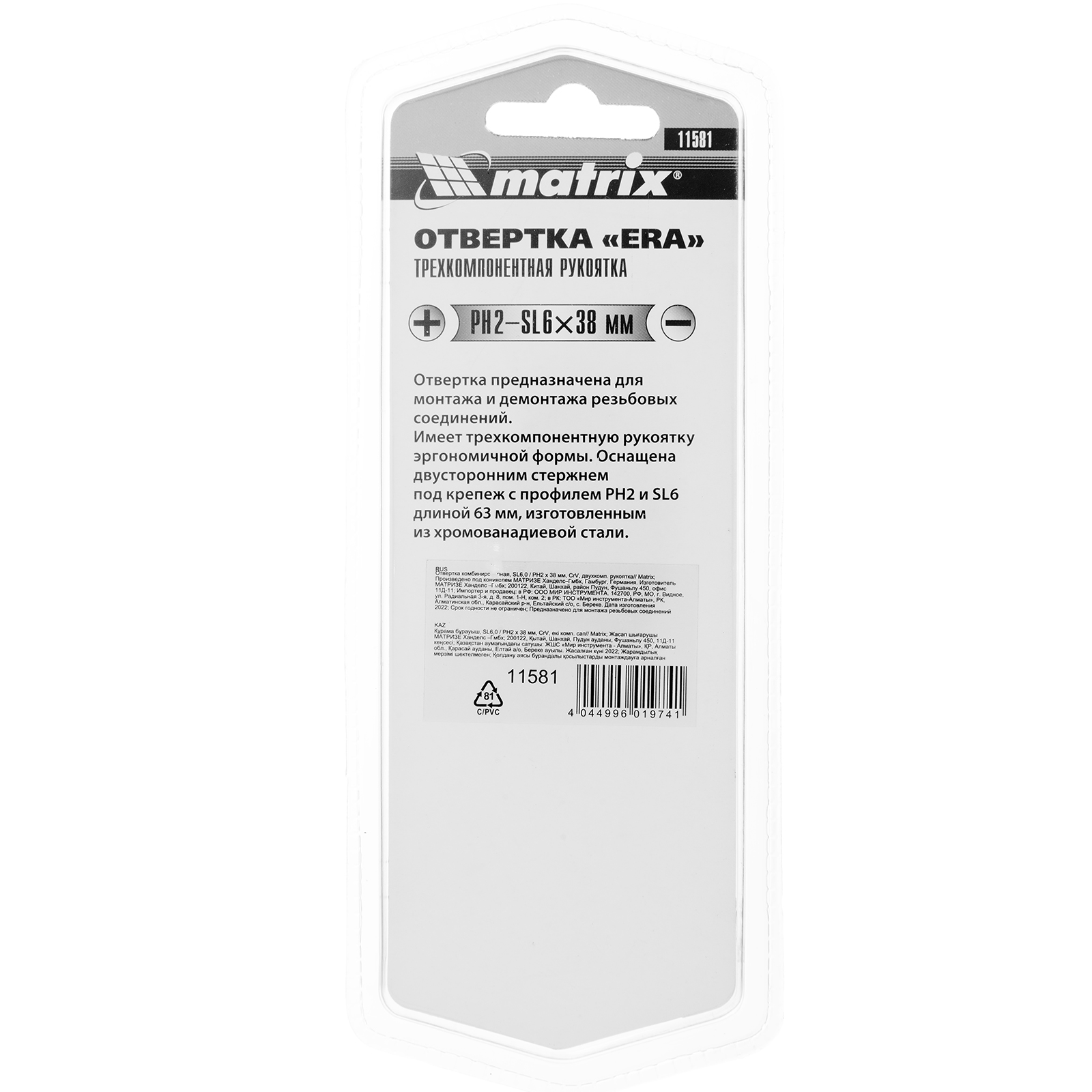 Отвертка комбинированная, SL6/PH2 х 38 мм, CrV, двухкомпонентная рукоятка Matrix в Краснодаре