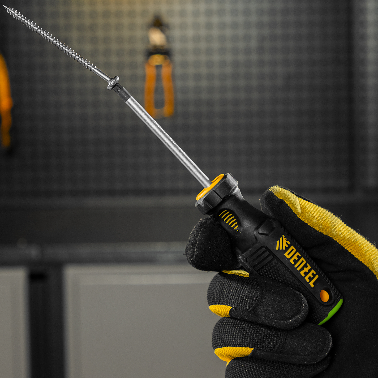 - Удобное хранение — отверстие в рукоятке позволяет подвешивать отвертку на крючок или скобу.