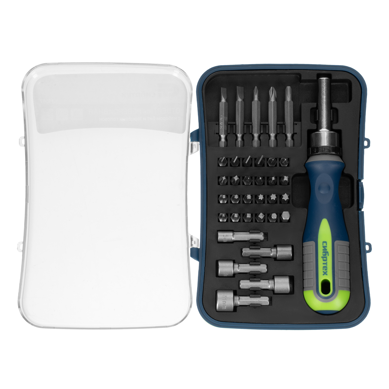 Отвертка реверсивная с набором бит и торцевыми головками, 35 шт, CrV Сибртех в Краснодаре