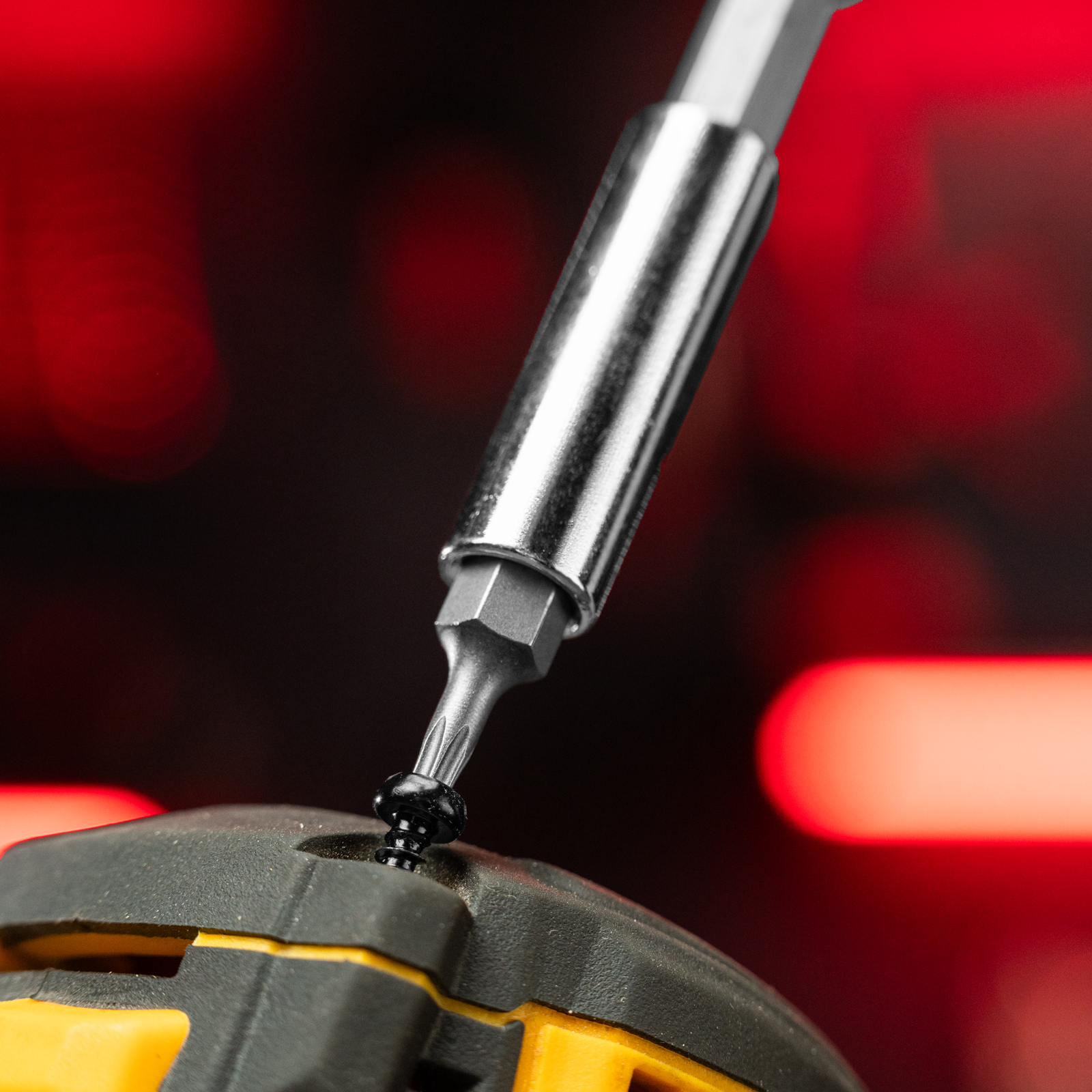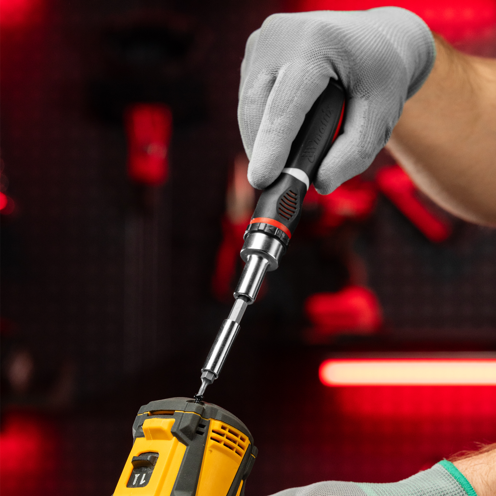 - Продуманная комплектация — в набор входит битодержатель для работы с шуруповертом.
