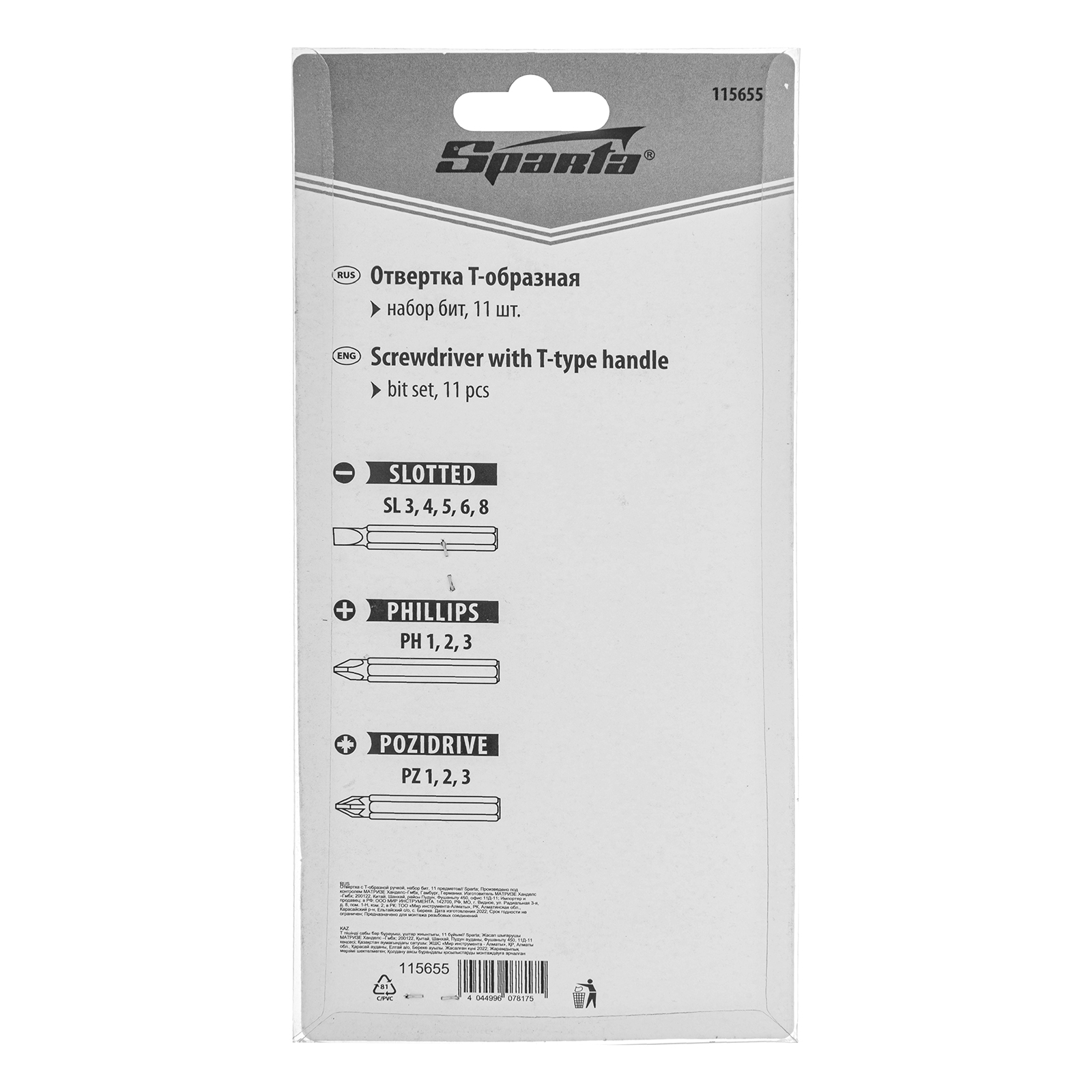 Отвертка с Т-образной ручкой, набор бит, 11 шт, Sparta в Краснодаре