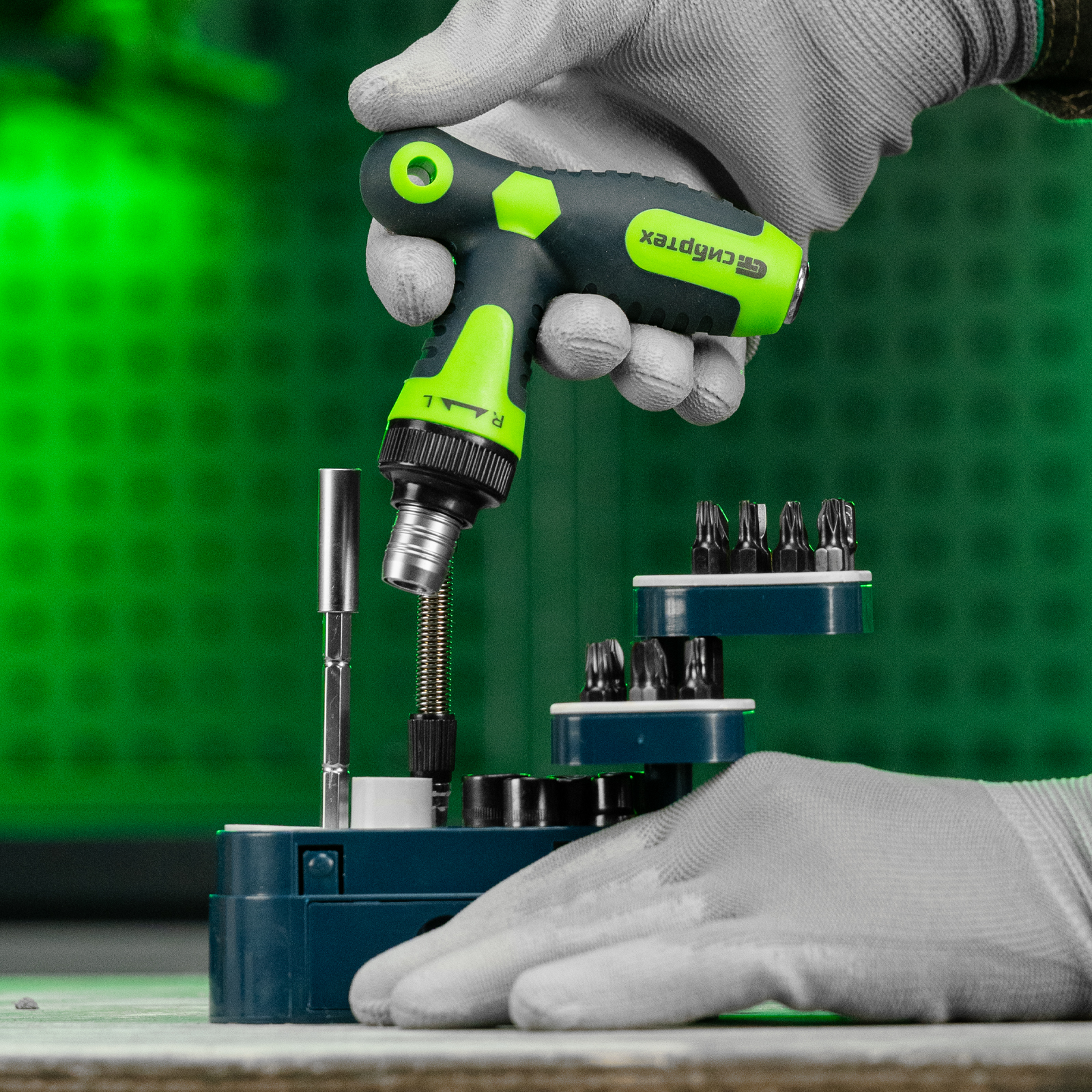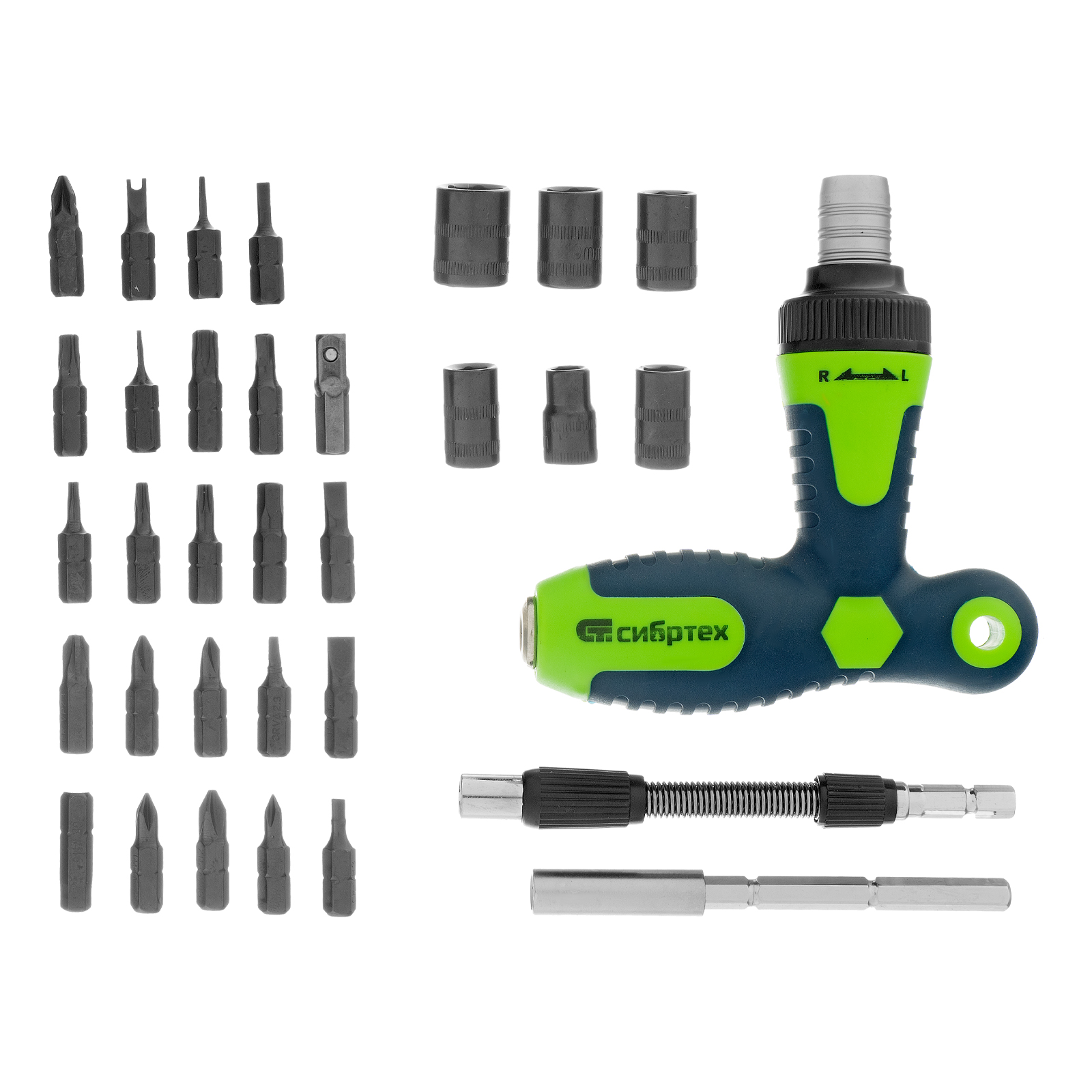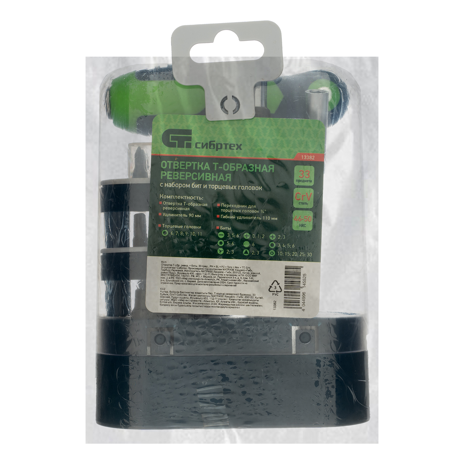 Отвертка Т-образная реверсивная с набором бит, торцевых головок, 33 предмета, CrV Сибртех в Краснодаре