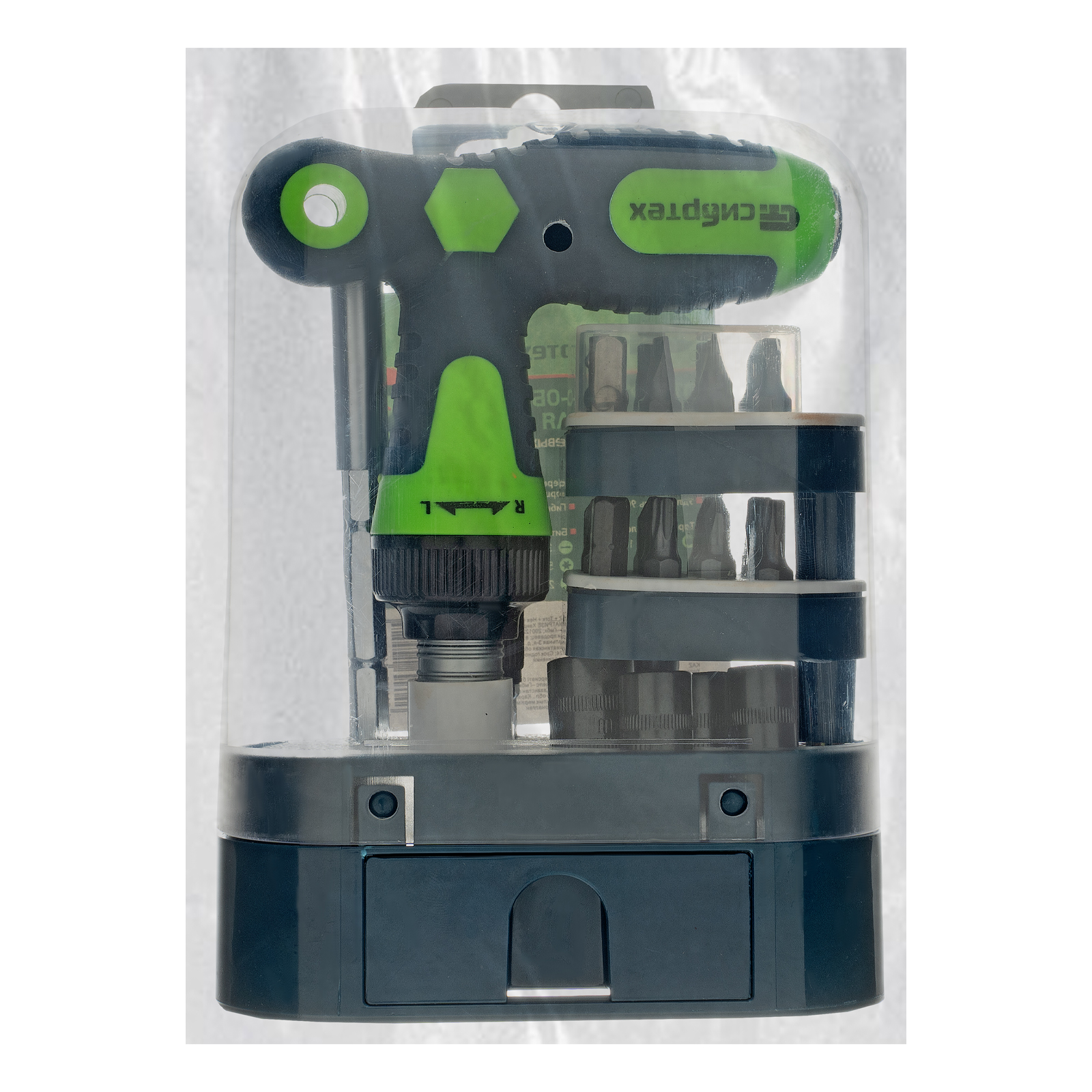 Отвертка Т-образная - 1 штГибкий удлинитель - 1 штТорцевые головки: 6, 7, 8, 9, 10, 11 - 6 штБиты: SL3, SL5, SL6, PH0, PH1, PH2, PZ2, PZ3, T5, T6, SPAN 6, H3, H4, H5, H6, TW 2, TW3, TA2, TA3, TT10, TT15, TT20, TT25, TT30 - 24 шт |
