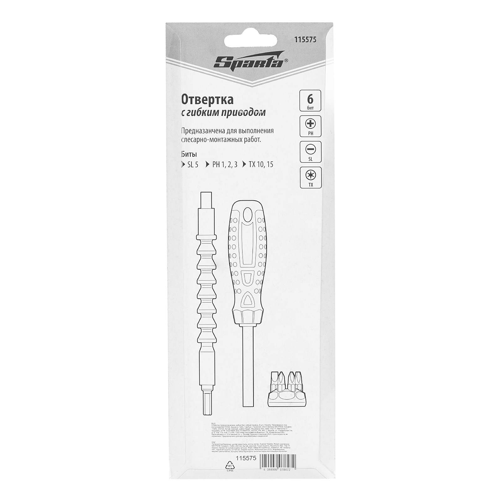 Отвертка телескопическая, набор бит, гибкий привод, 8 шт, Sparta в Краснодаре