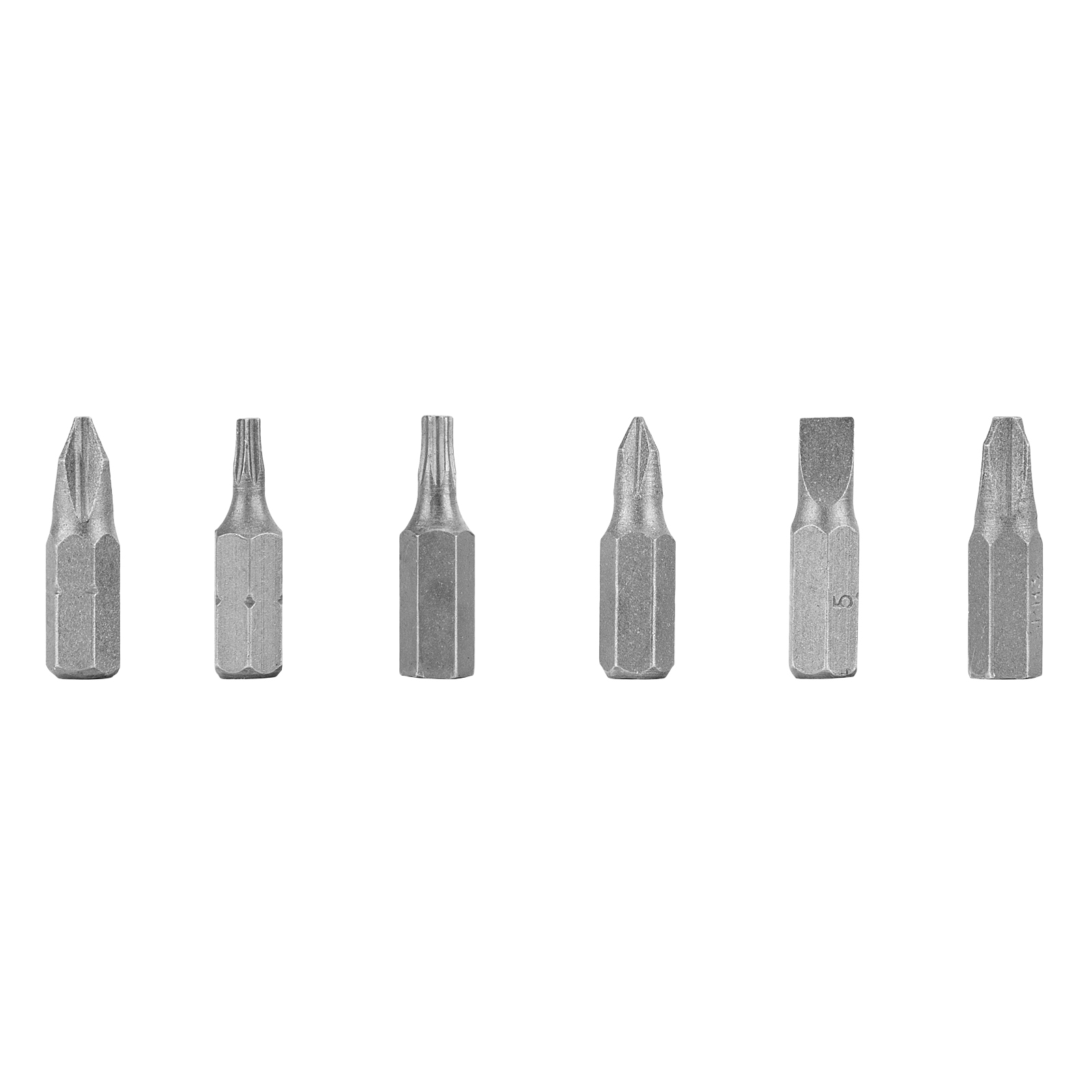 Отвертка-держатель - 1 штБиты 25 мм: РН1, РН2, РН3, SL5, Т10, Т15 - 6 штГибкий удлинитель - 1 шт |