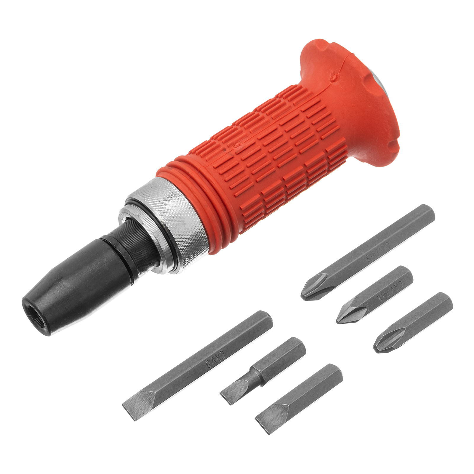 Ударно-поворотная отвертка Matrix 11579 с присоединительным размером 1/2 дюйма, с набором бит из 6 шт., с обрезиненной ручкой, в пластиковом боксе, используется для работ с резьбовыми соединениями. Благодаря металлическому затыльнику выдерживает удары молотком, поэтому справляется даже с перетянутыми или заржавевшими крепежами. Входящие в набор биты подходят для шлицев SL и PH. Инструмент предназначен для бытового использования, а также будет полезен дома, на даче или в гараже.