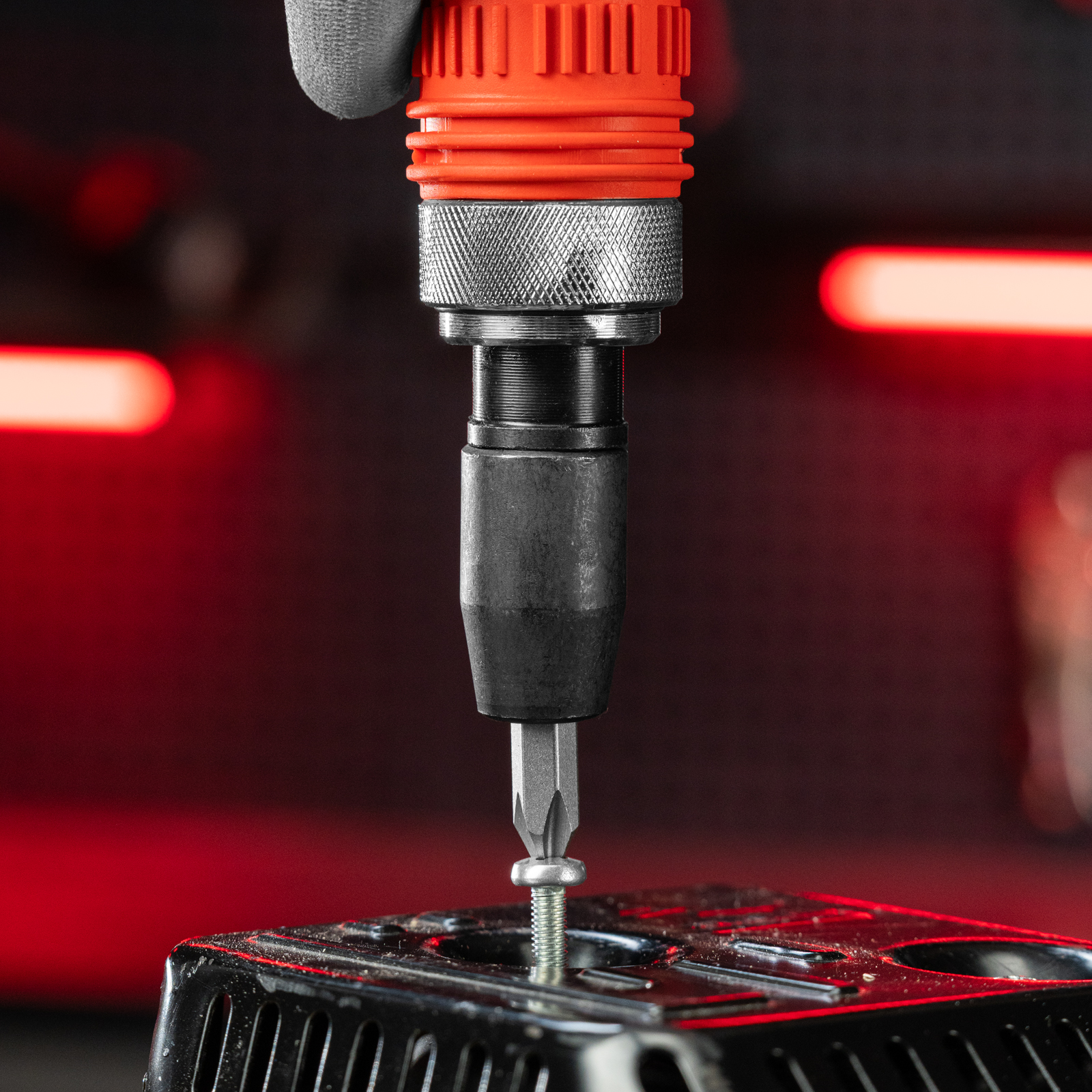 - Присоединительный квадрат 1/2 дюйма с шариковым фиксатором позволяет использовать отвертку с торцевыми головками.