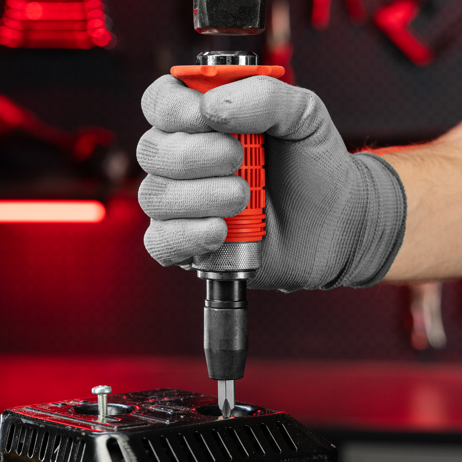 - Корпус отвертки обрезинен, и она не выскальзывает из ладони, что повышает комфорт во время работы.