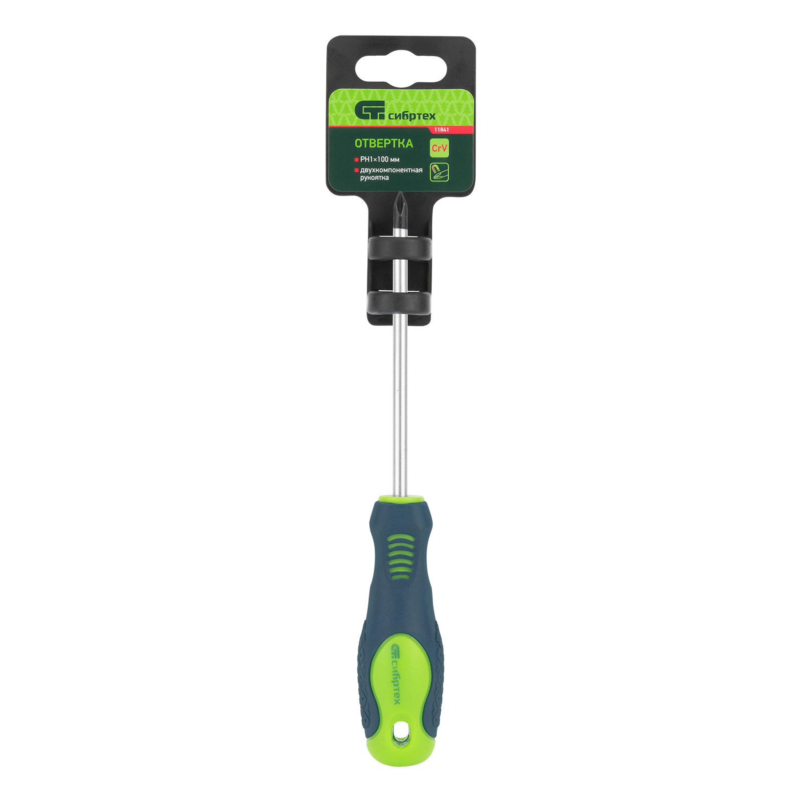 Отвертка, PH1 х 100 мм, CrV, двухкомпонентная рукоятка Сибртех в Краснодаре