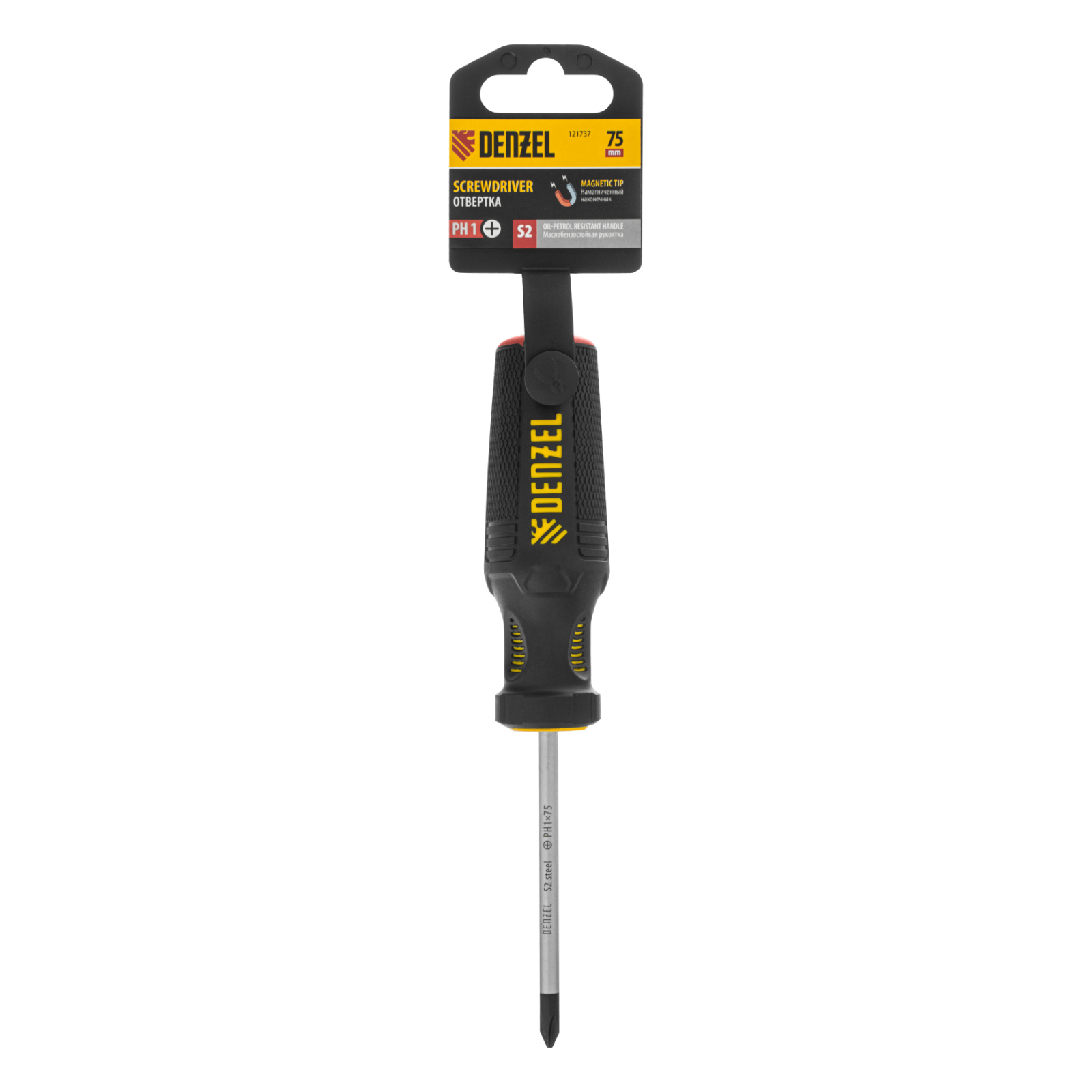 Отвертка, PH1х75 мм, S2, 3к рукоятка Denzel в Краснодаре