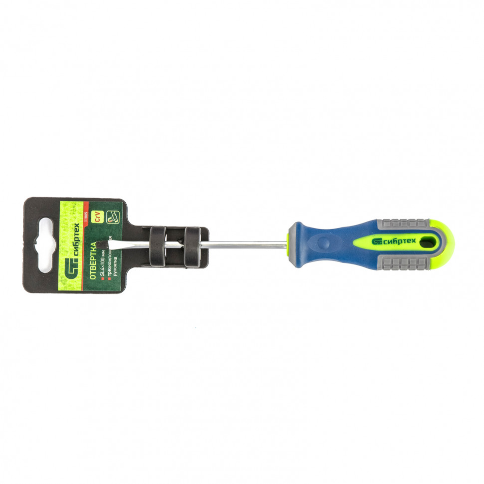 Отвертка, SL4 х 100 мм, CrV, трехкомпонентная рукоятка Сибртех в Краснодаре