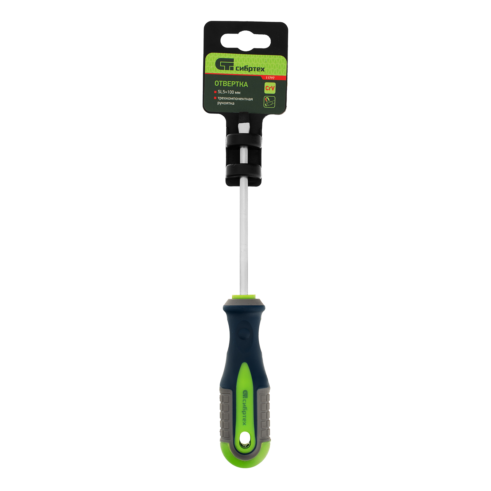 Отвертка, SL5 х 100 мм, CrV, трехкомпонентная рукоятка Сибртех в Краснодаре