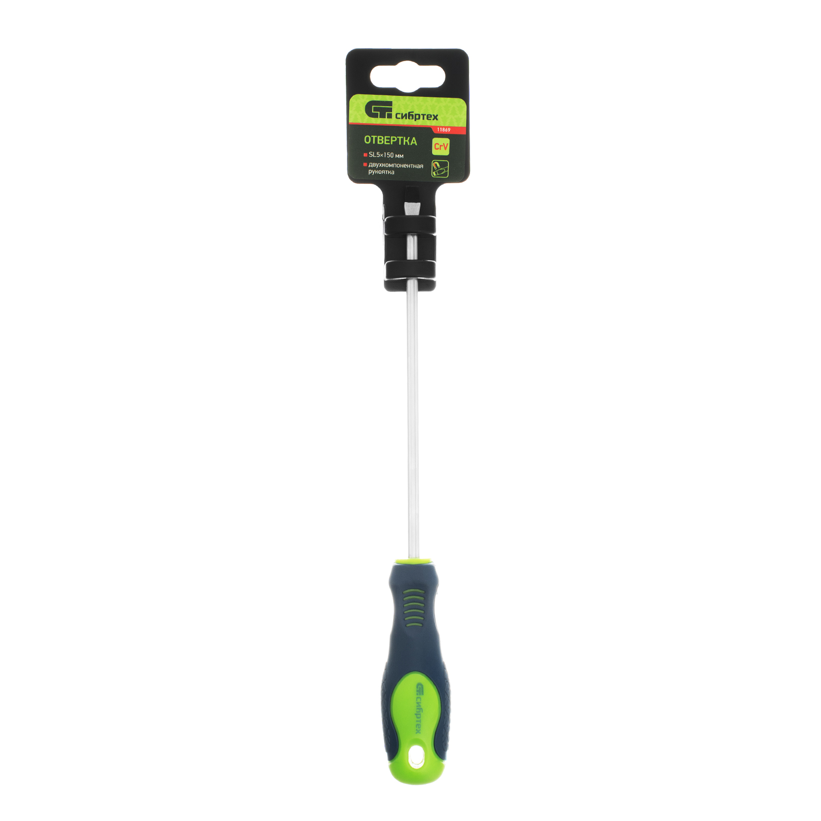 Отвертка, SL5 х 150 мм, CrV, двухкомпонентная рукоятка Сибртех в Краснодаре